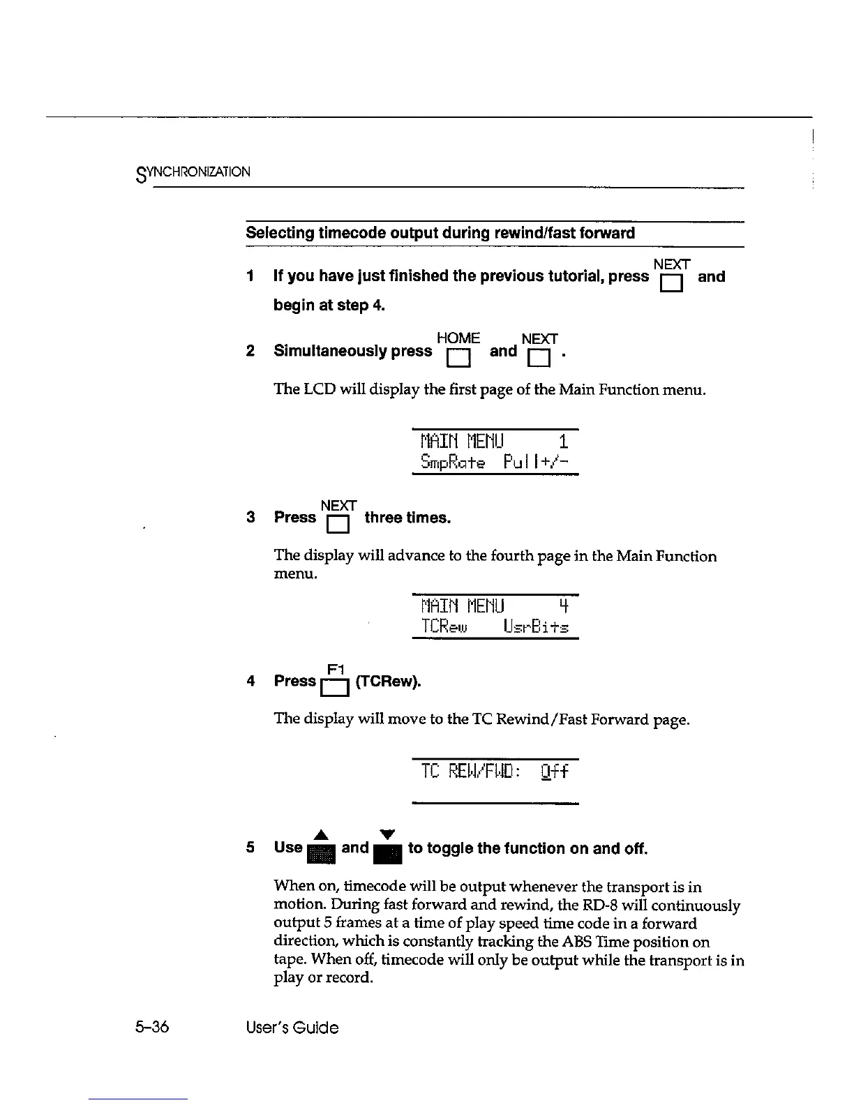 Fostex RD-8 - Selecting Timecode Output During Rewind;Fast Forward