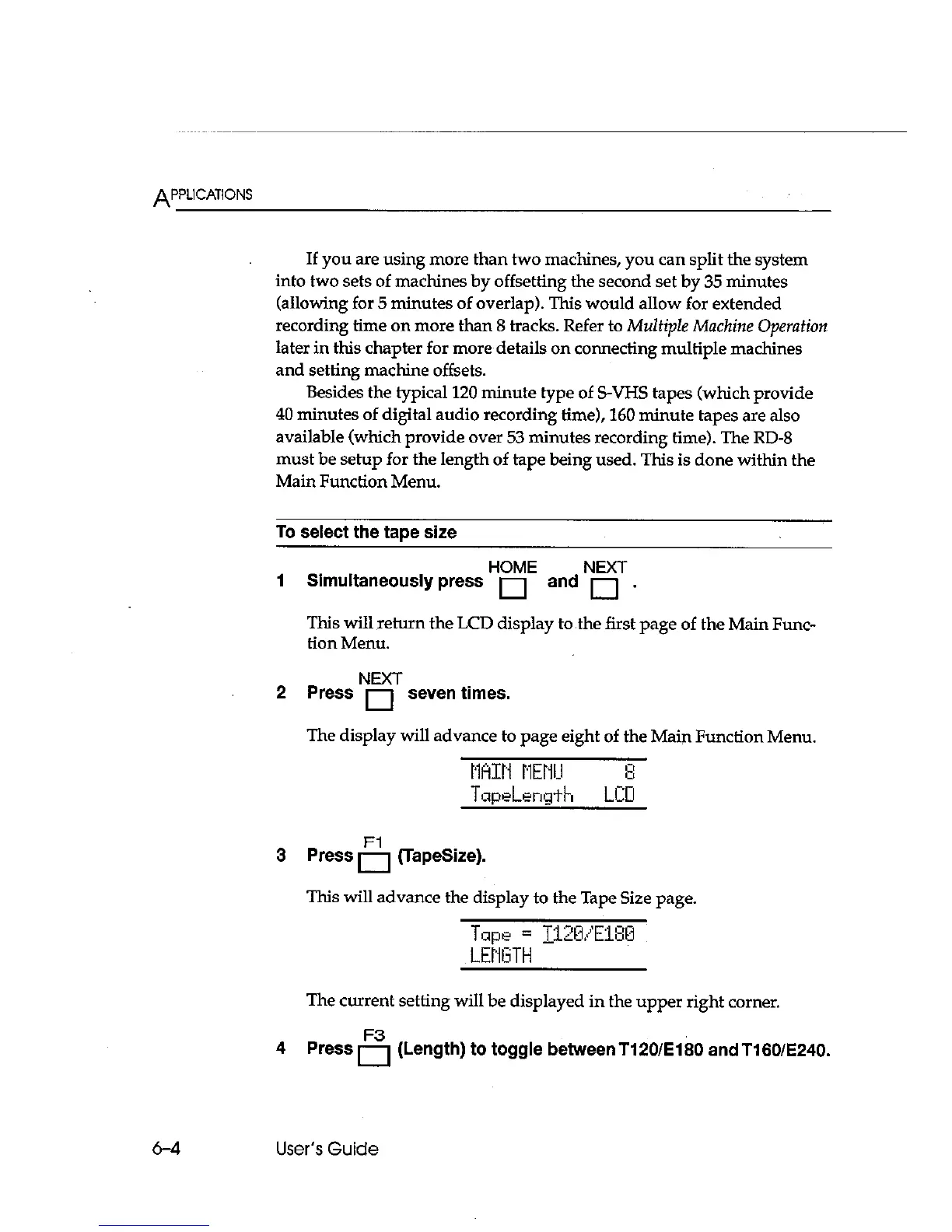 Fostex RD-8 - To Select the Tape Size