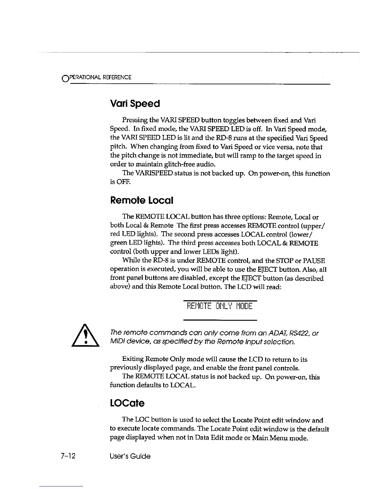 Fostex RD-8 - Vari Speed; Remote Local; Locate