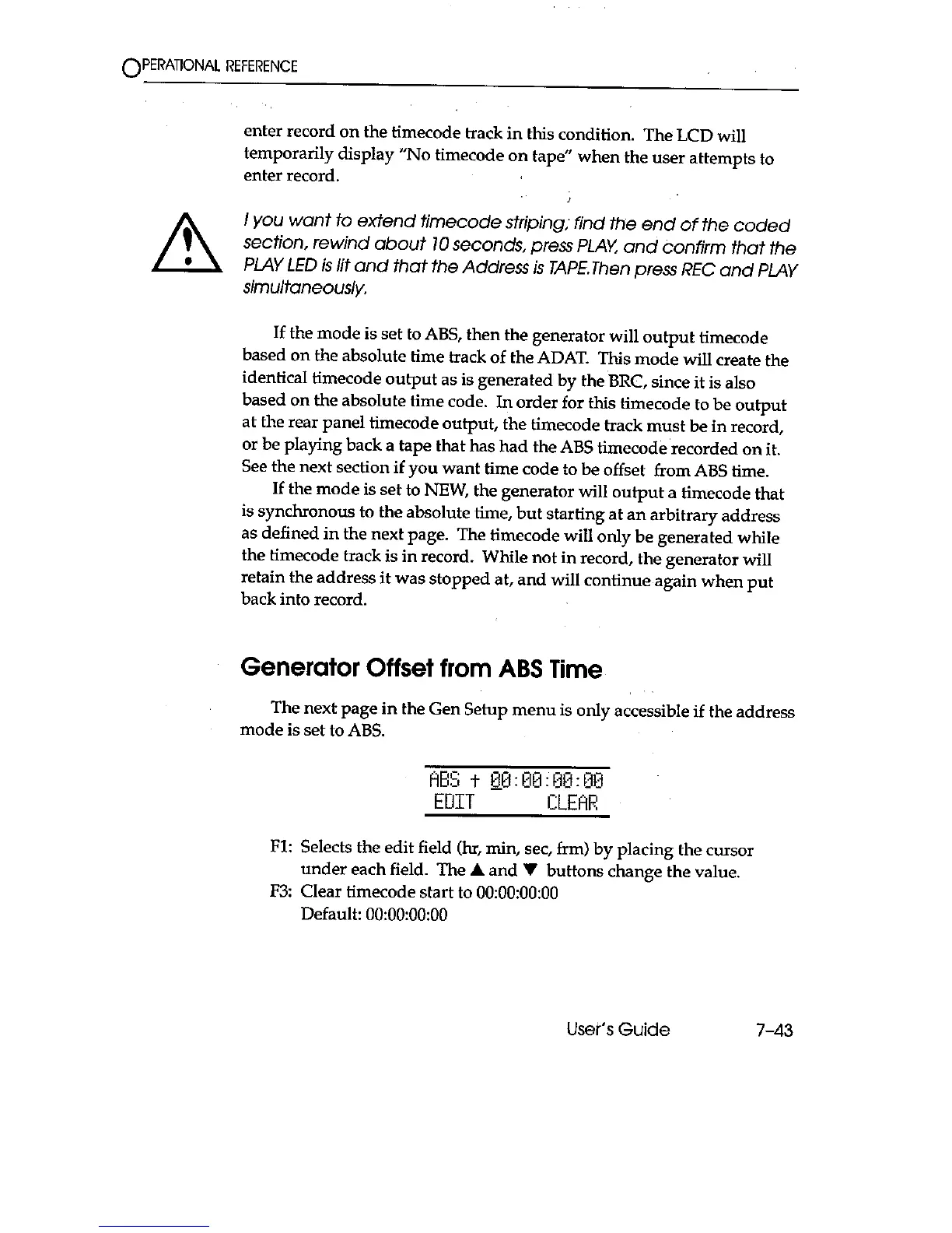 Fostex RD-8 - Generator Offset from ABS Time