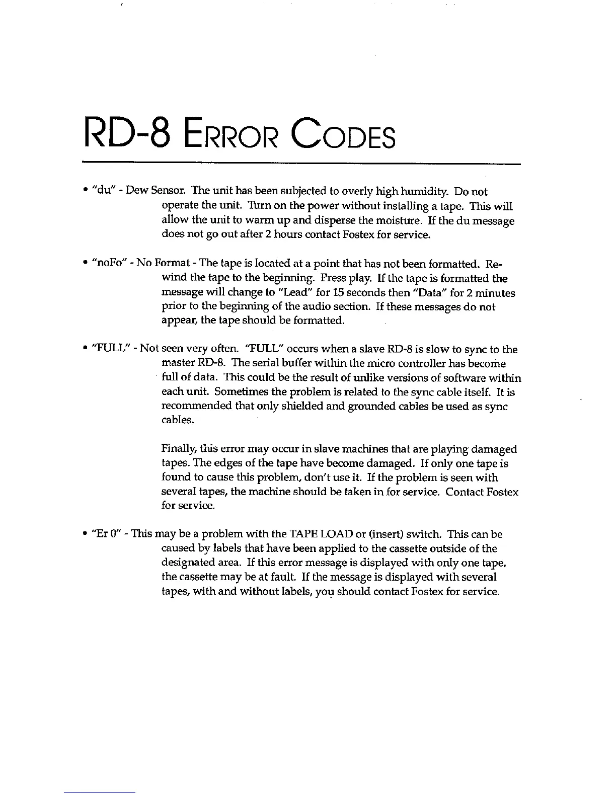 Fostex RD-8 - Error Codes