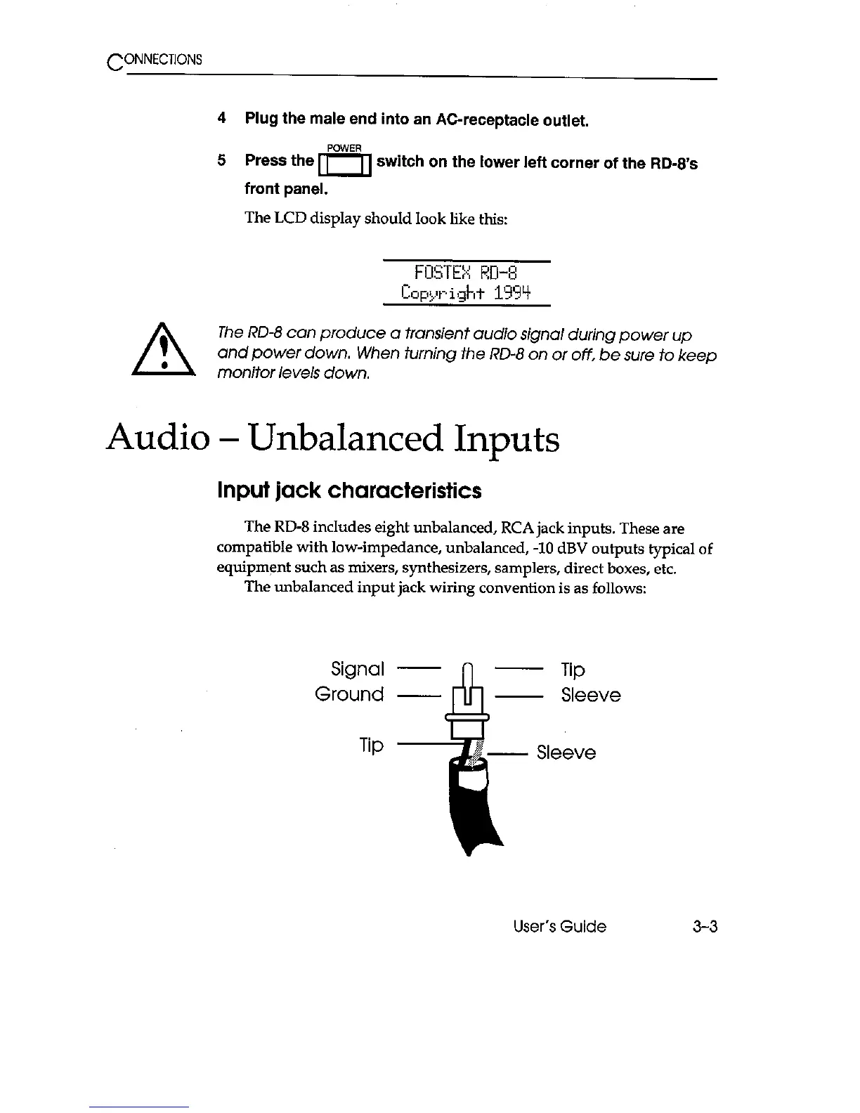 Fostex RD-8 - Audio; Unbalanced Inputs; Input Jack Characteristics
