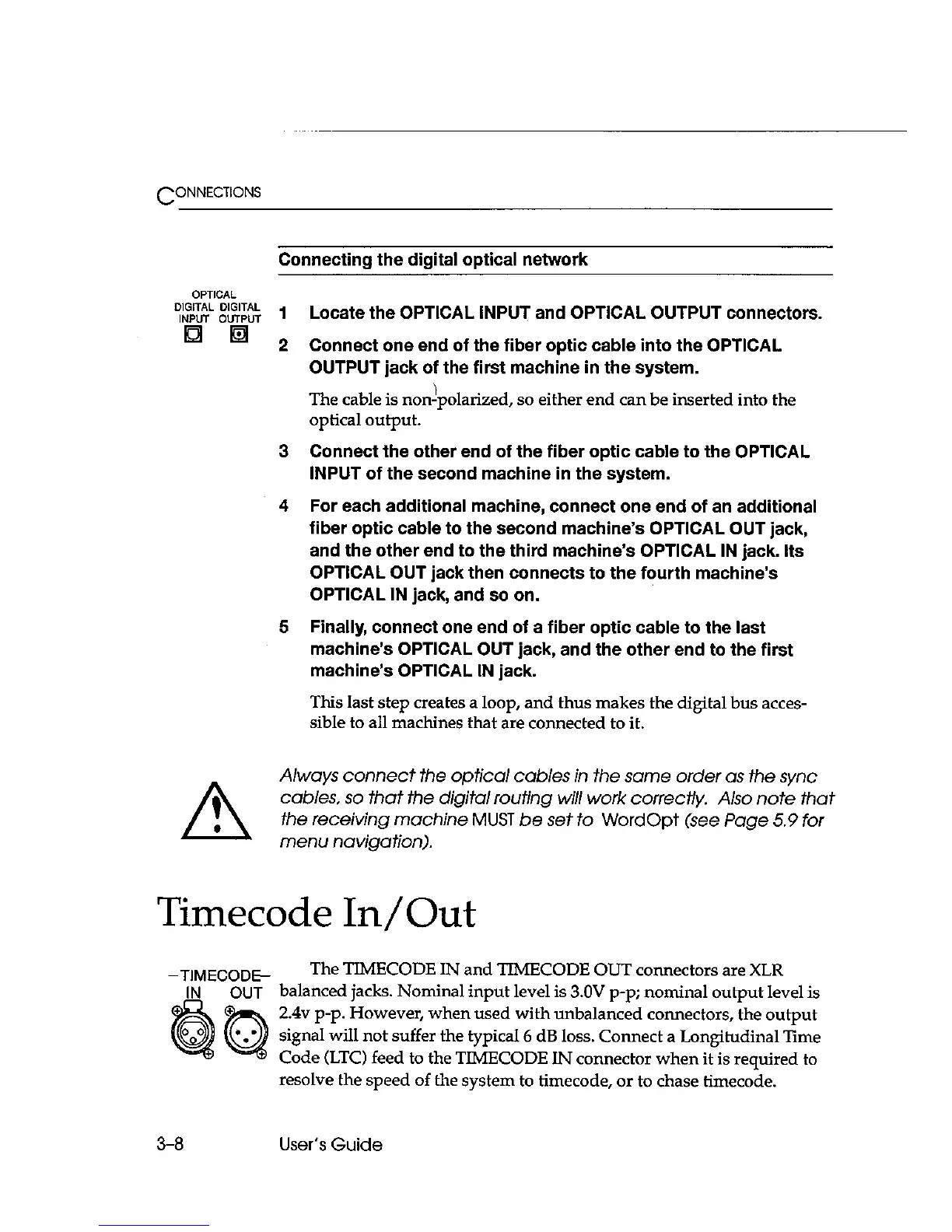 Fostex RD-8 - Timecode In;Out; Connecting the Digital Optical Network