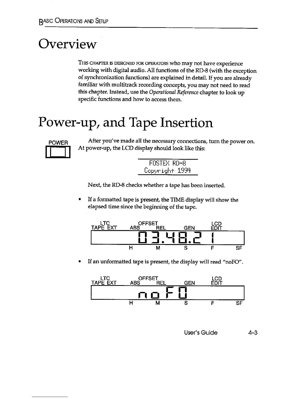 Fostex RD-8 - Power-Up and Tape Insertion