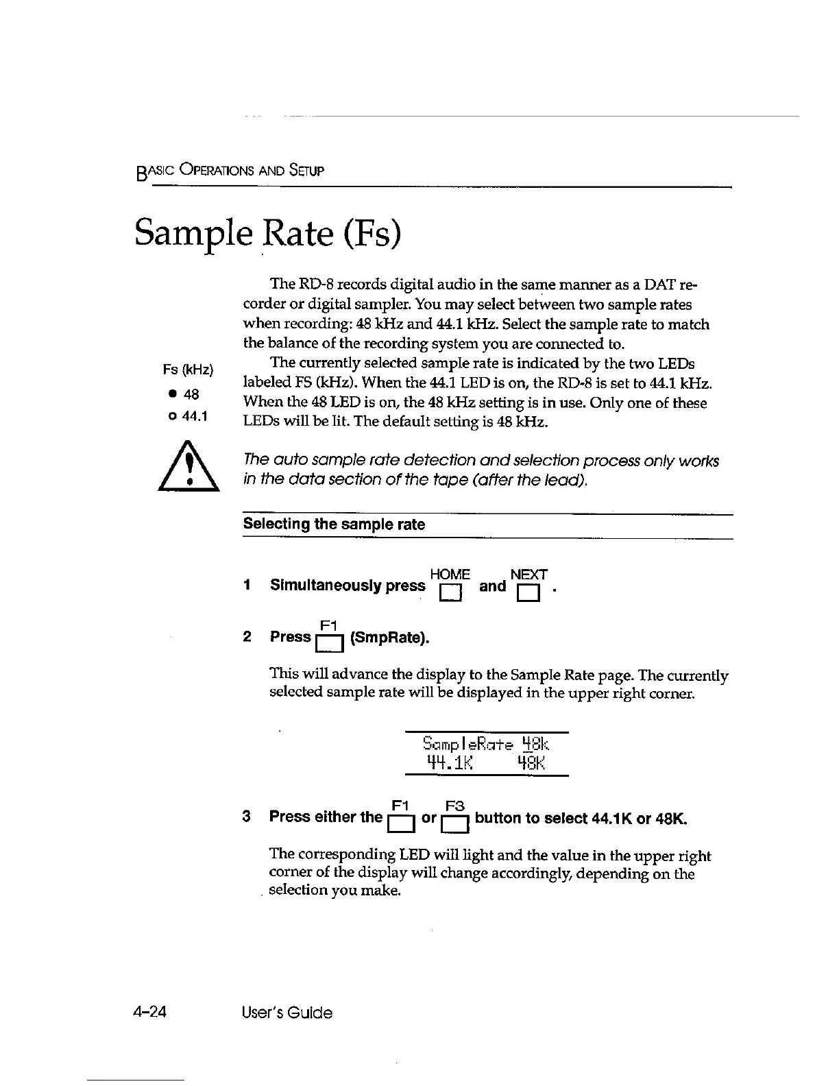 Fostex RD-8 - Sample Rate; Selecting the Sample Rate