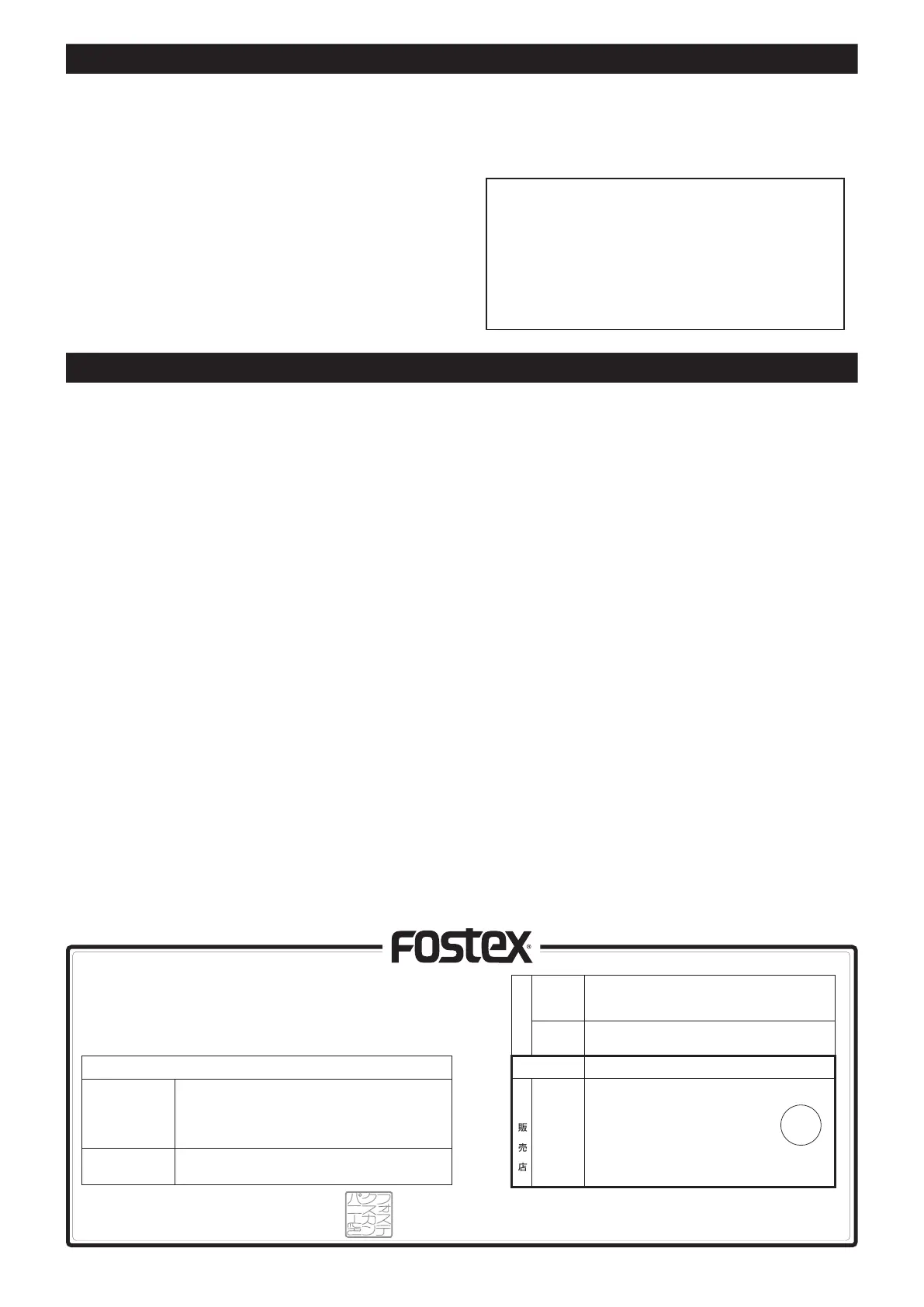このたびフォステクス製品をお買い上げいただきまして、誠にありがとうございま