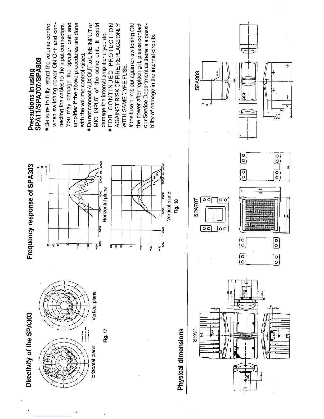 Fostex SPA11 - Directivity of the SPA303; Frequency response of SPA303; Precautions in using SPA11;SPA707;SPA303; General Operation Precautions