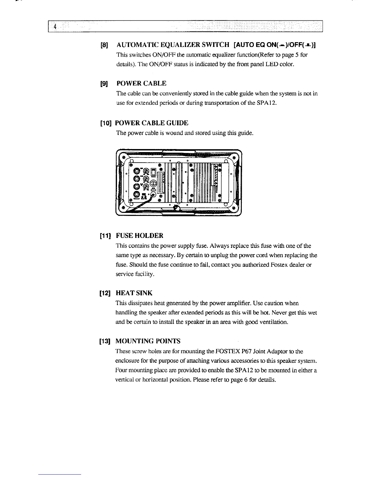 Fostex SPA12 - Power Cable; Fuse Holder; Heat Sink; Mounting Points