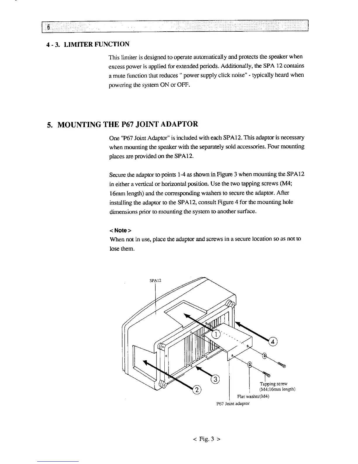Fostex SPA12 - Limiter Functionality; SPA12 Mounting Guide; Mounting the P67 Joint Adaptor
