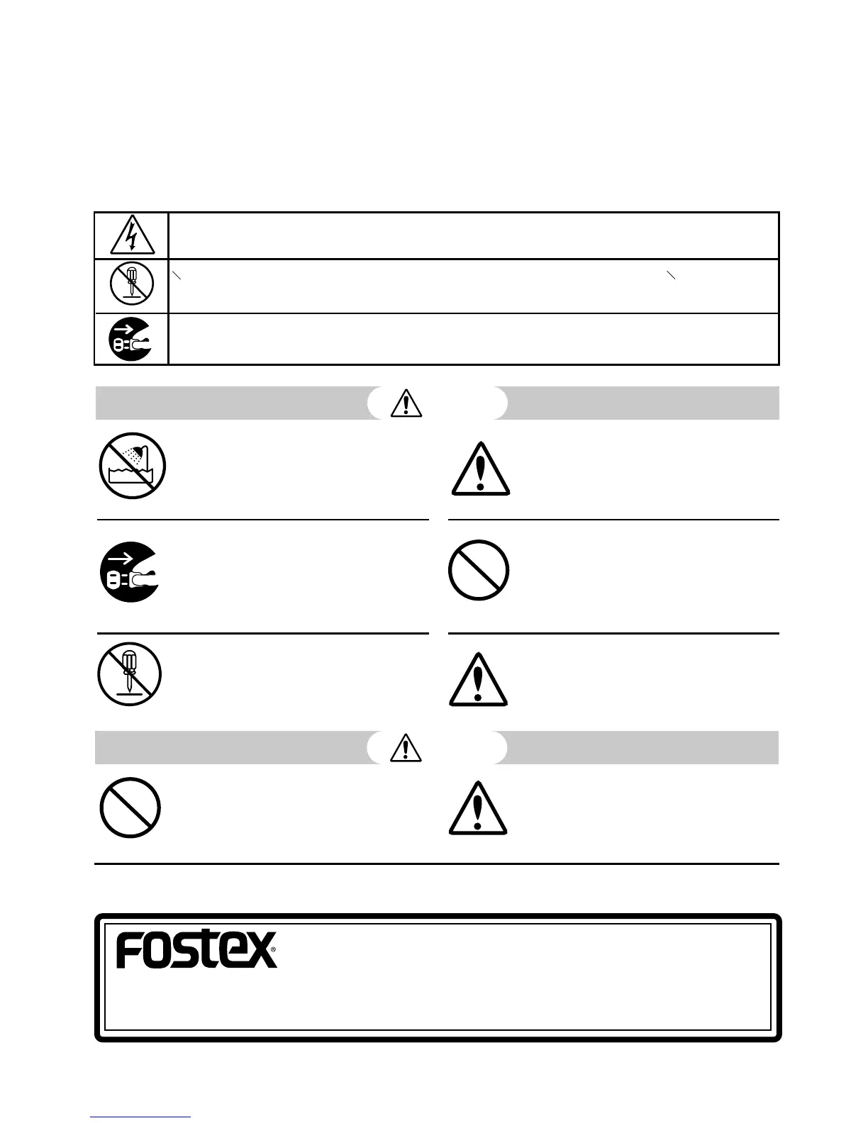 本書は、お買い上げいただいたフォステクス製品を安全にご使用いただくために必要な「禁止事項」、