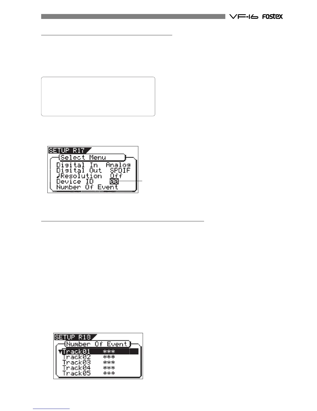 The “Setting the MIDI device number” menu enables you to set the VF-16 device ID number required to control the