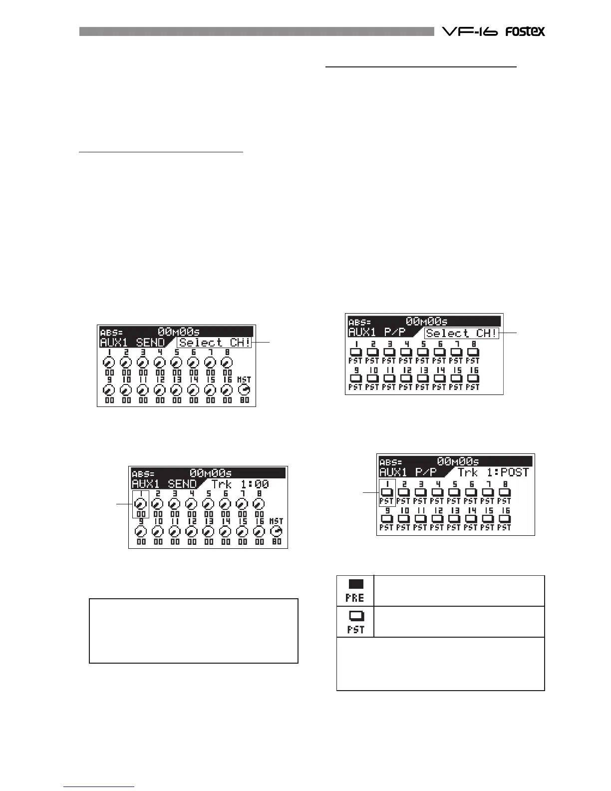 Selecting pre/post of AUX sends