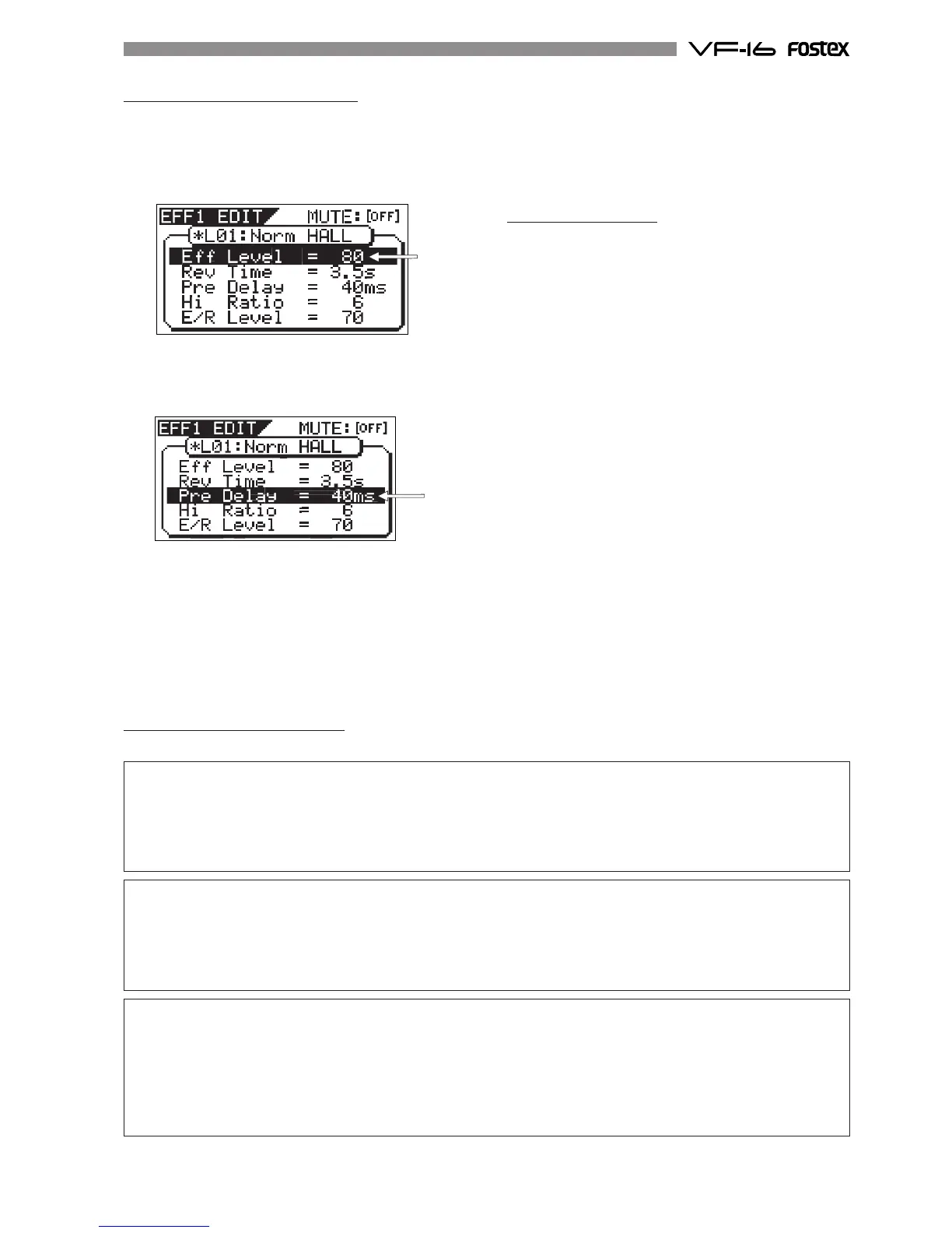 3. Pre Delay Adjust the time from the original sound until reverberation begins. Range: 0--100 ms