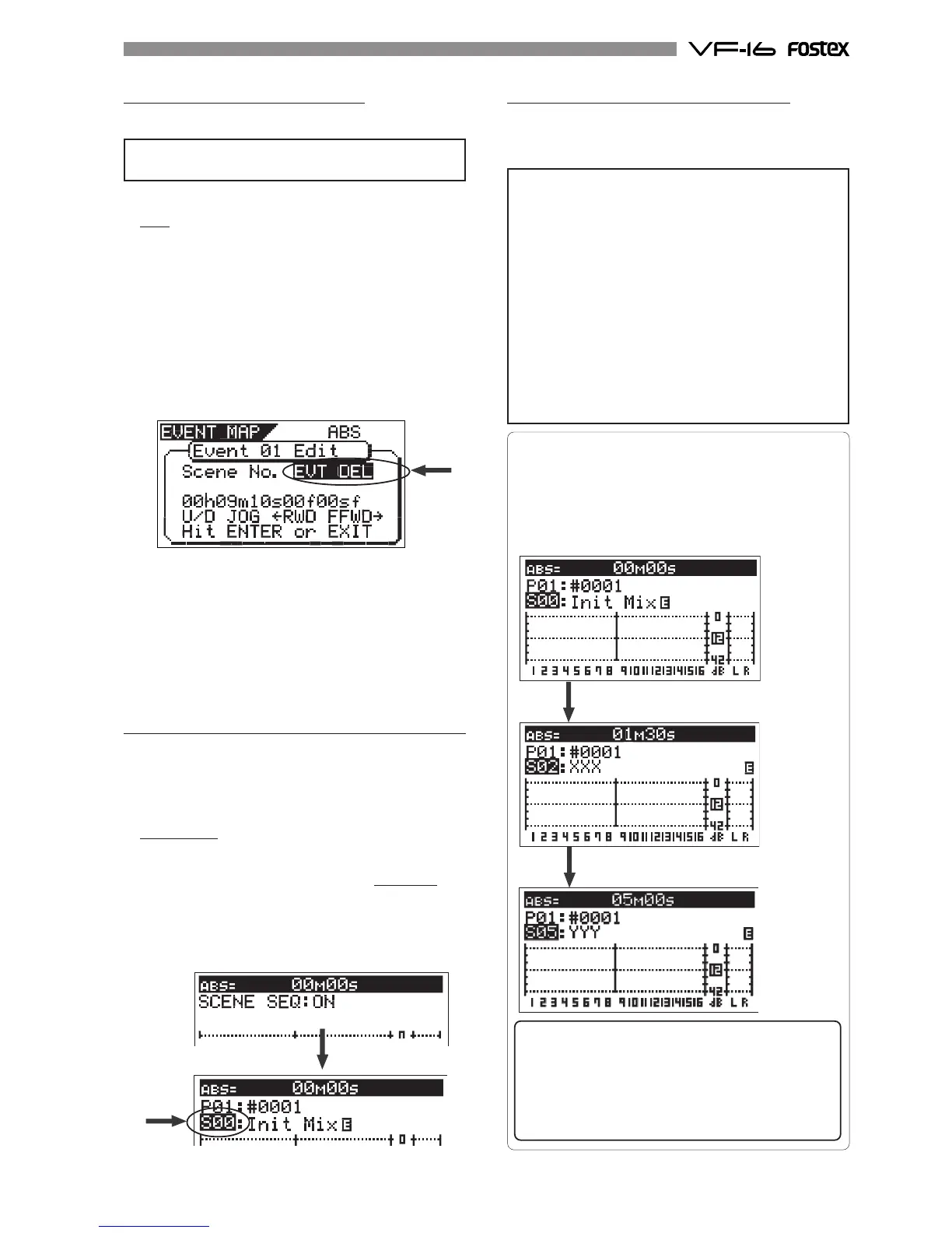 "EVT DEL" (Event Delete) flashes in the scene number