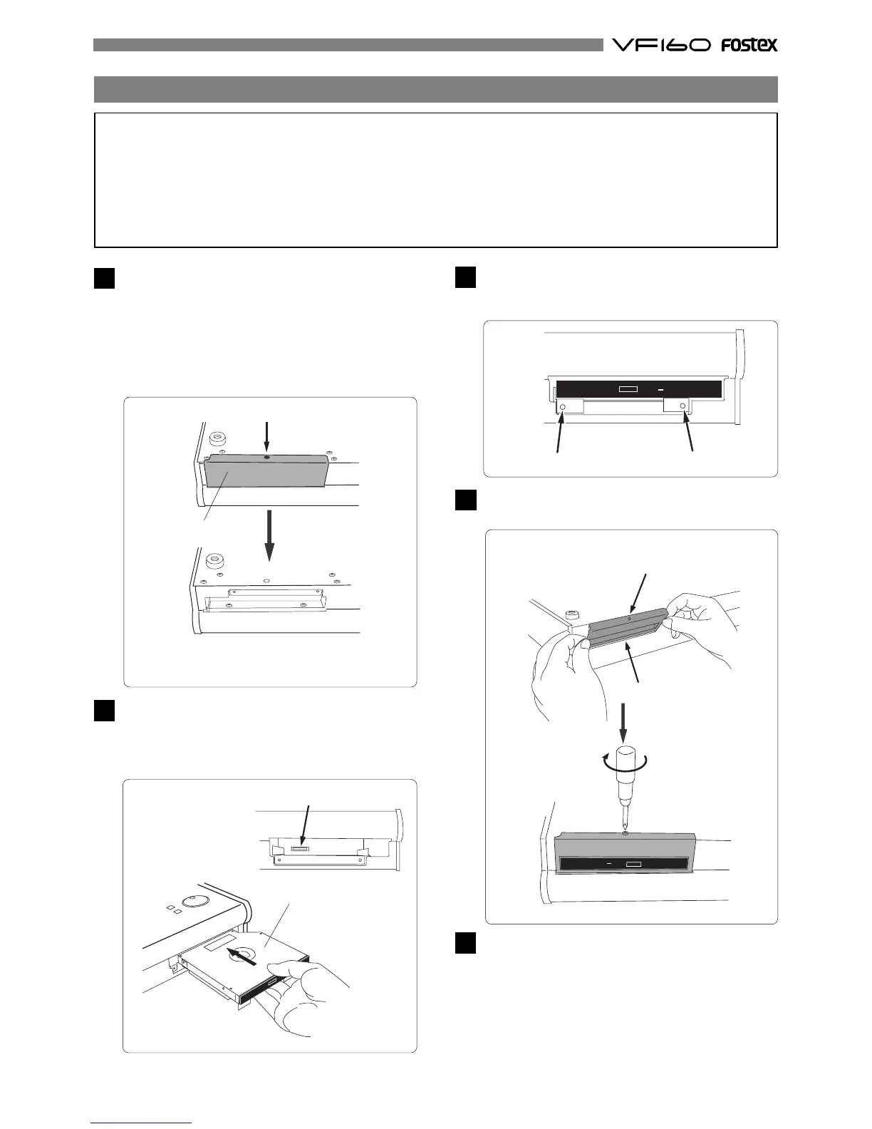 • Before installing the drive, make sure that the power of the VF160 is off and the power cord is discon-