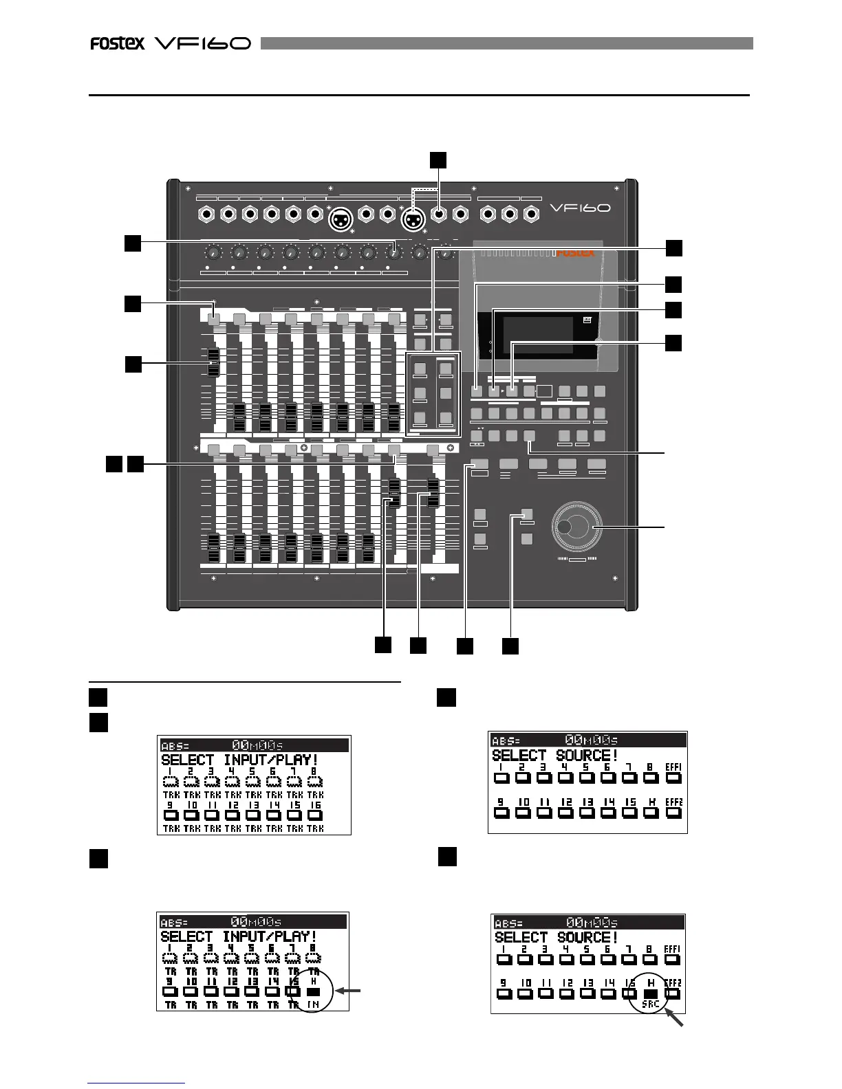 Here we will record a sound source connected to input H on track 1 of the recorder. Beforehand, set the