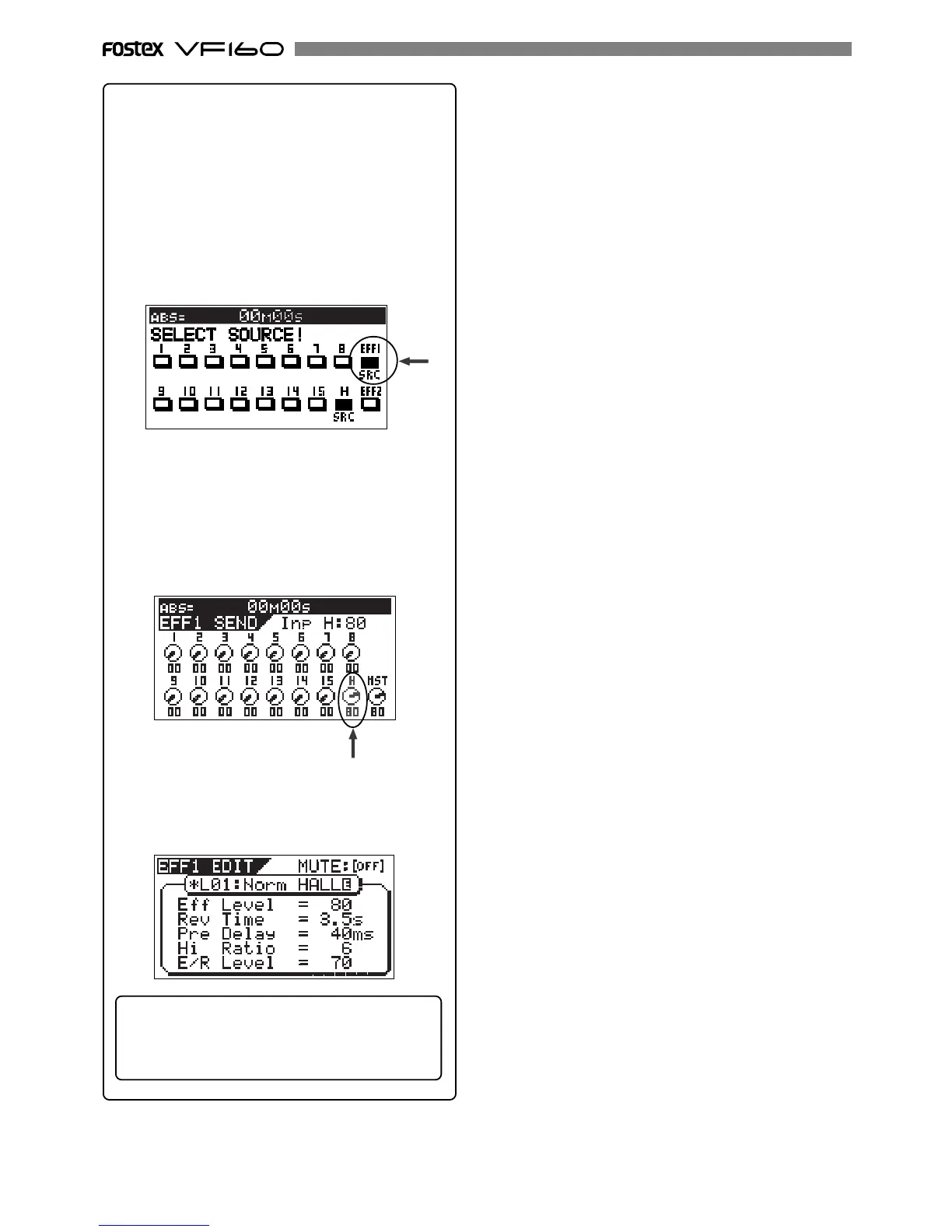 signal level sent to EFFECT1/EFFECT2, upon adjust-