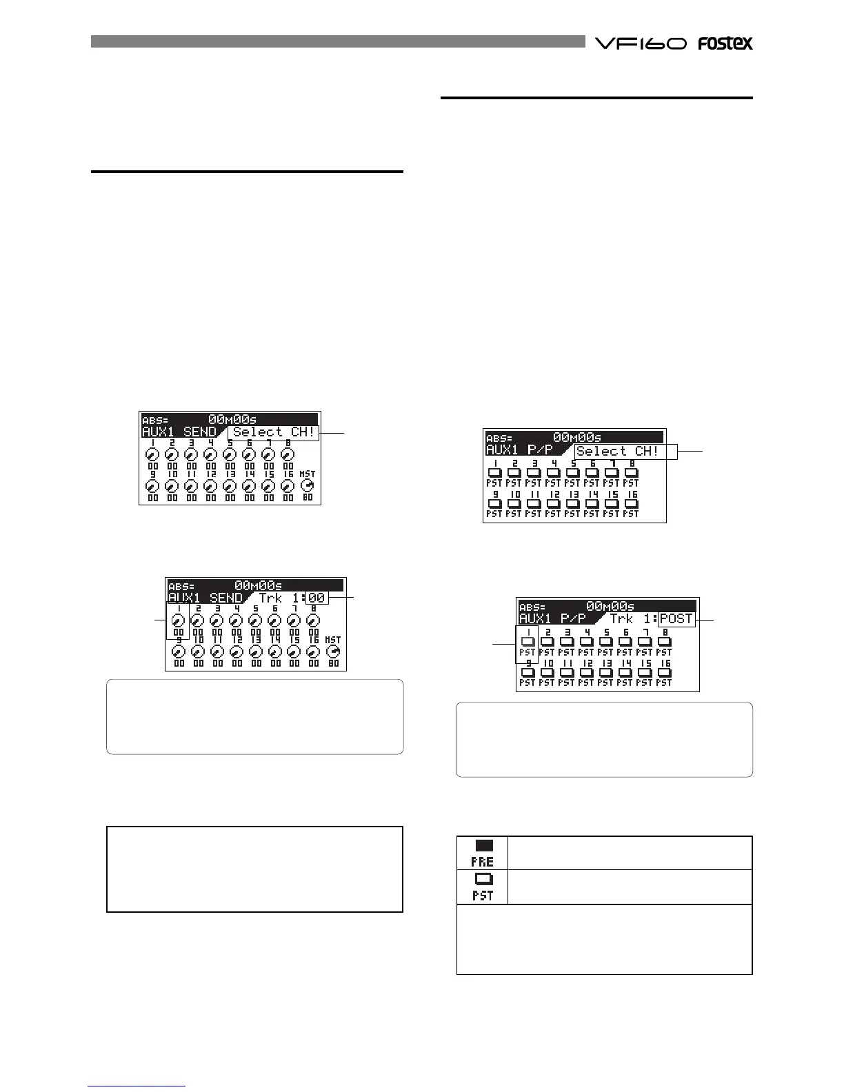 1. Press the [AUX1/AUX2] key to bring up the AUX send level