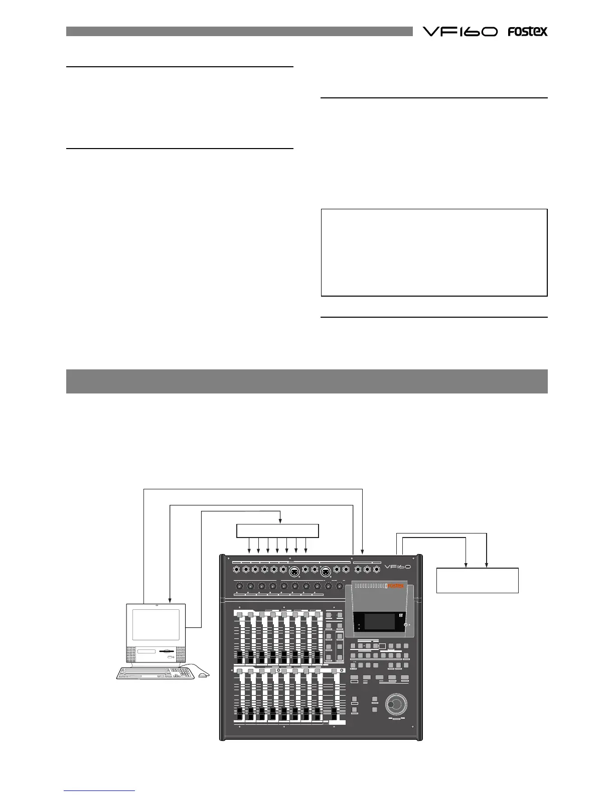using MMC (MIDI machine control). In this system, the VF160 will be the master and the computer (with sequence