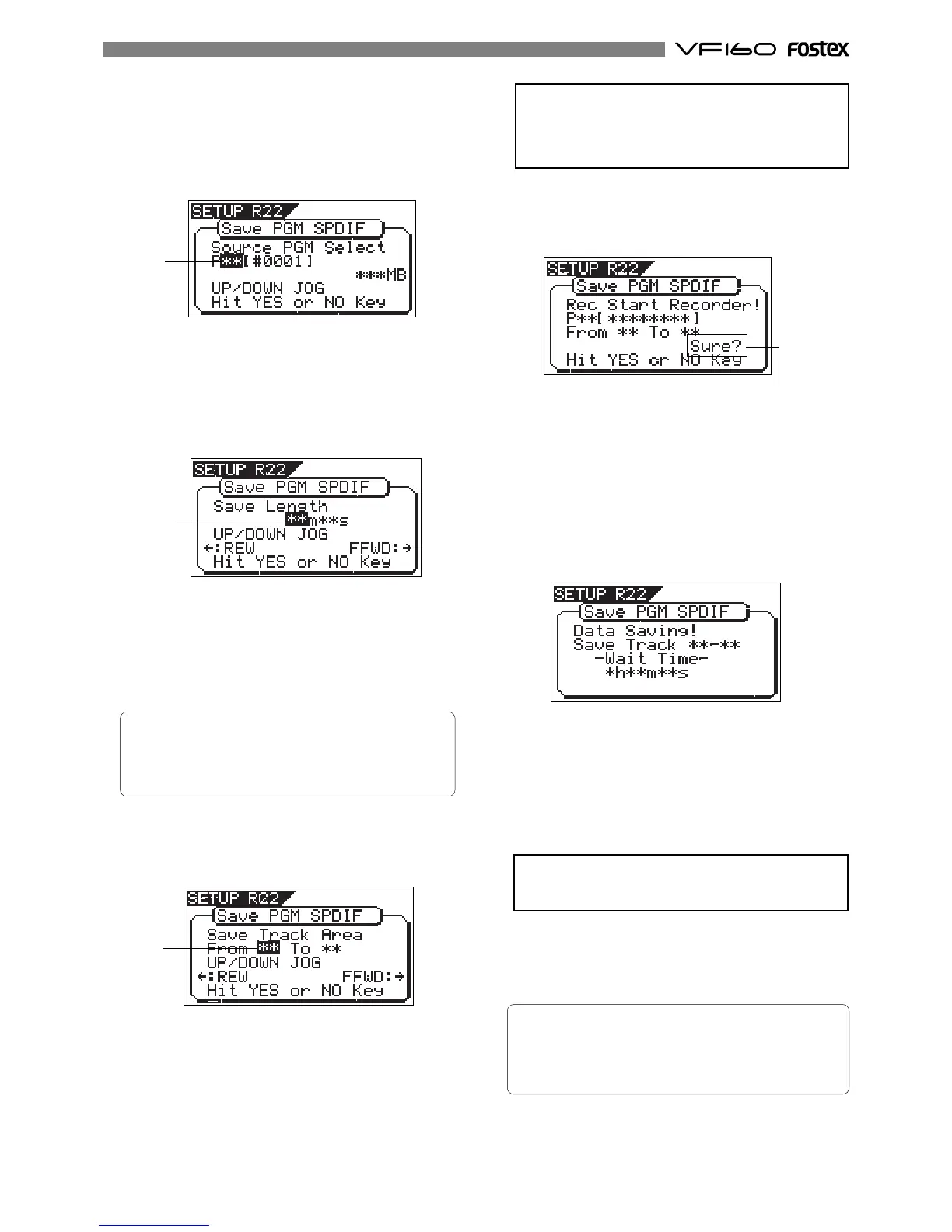 program and tracks to be saved, and "Sure?" flashes.