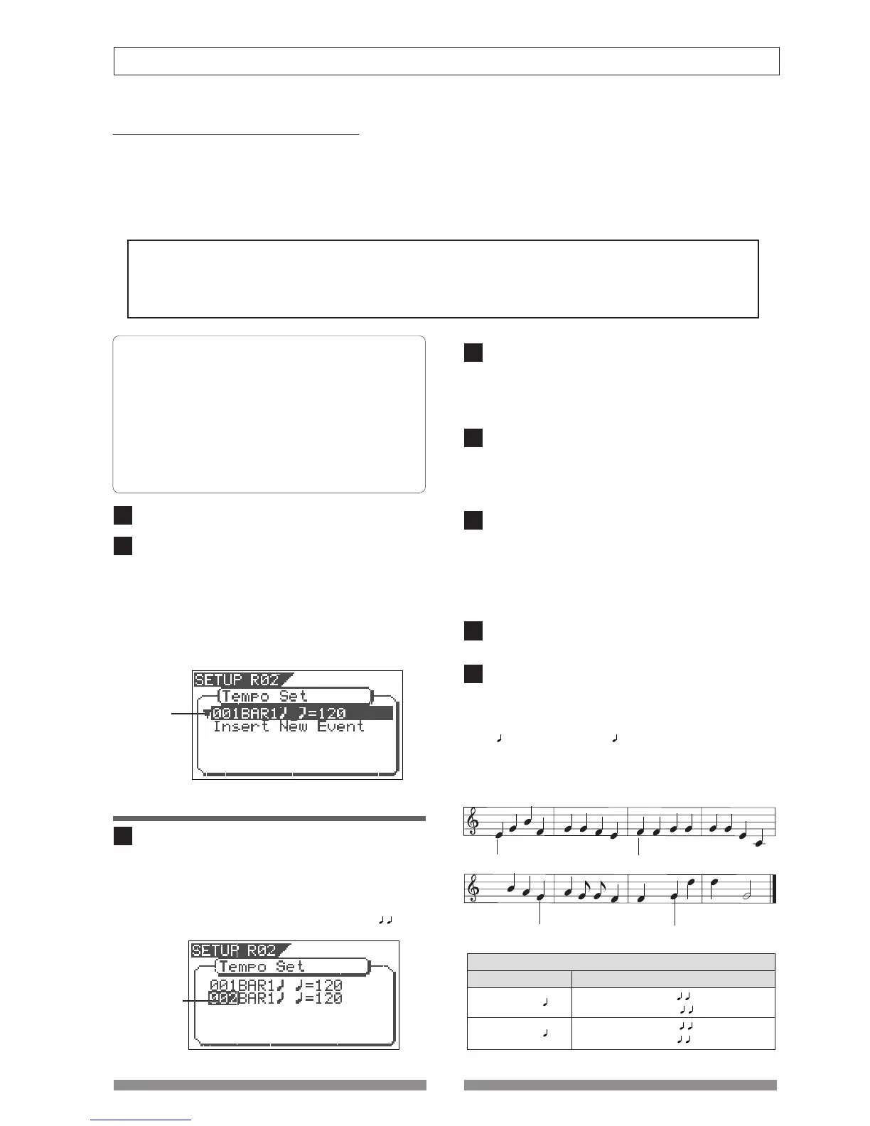 tempo setup display and “002” will flash. The bar value