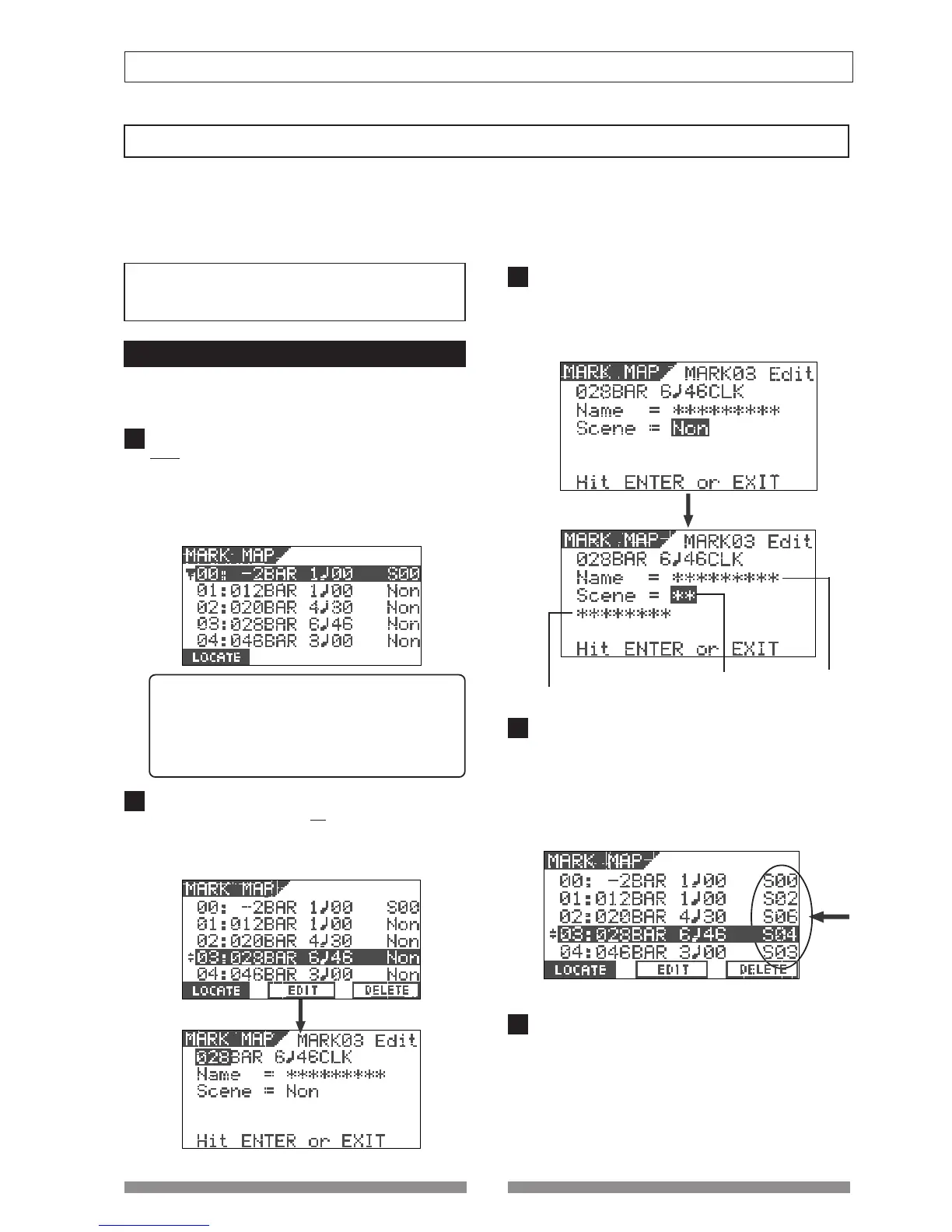 in the mark map. If you set the timebase to Bar/Beat/Clk, you can assign scene memories to be recalled to the