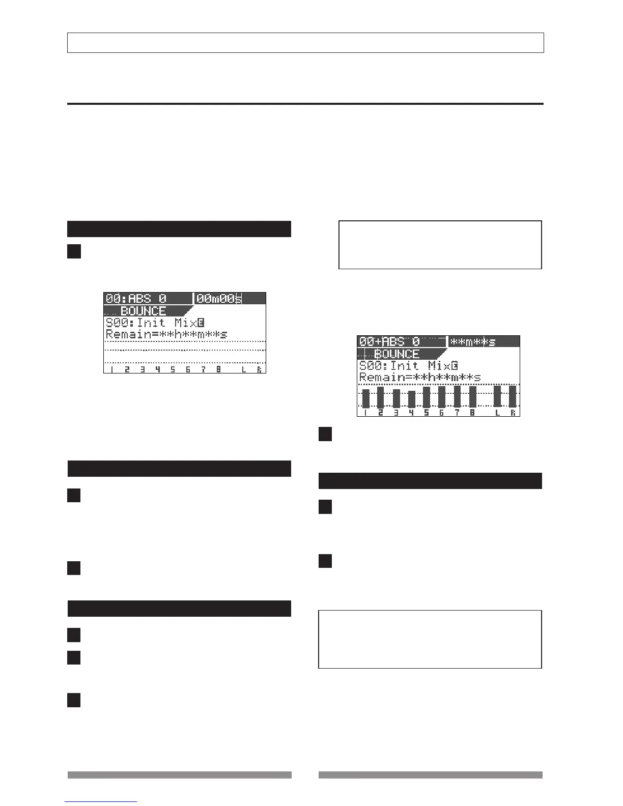 When the Bounce mode is active, Tracks 7/8 are automatically armed and the materials recorded on Tracks 1