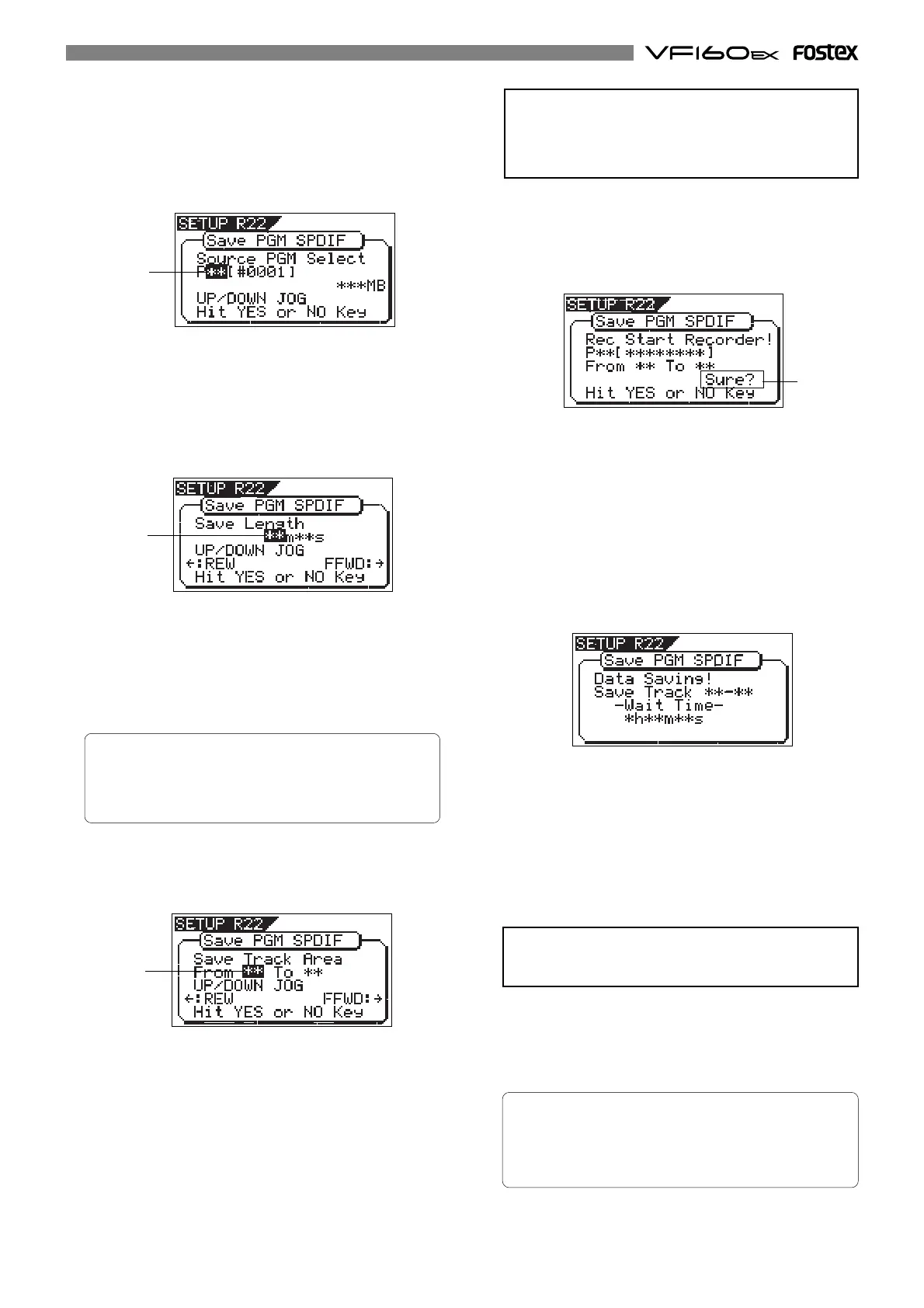 program and tracks to be saved, and "Sure?" flashes.
