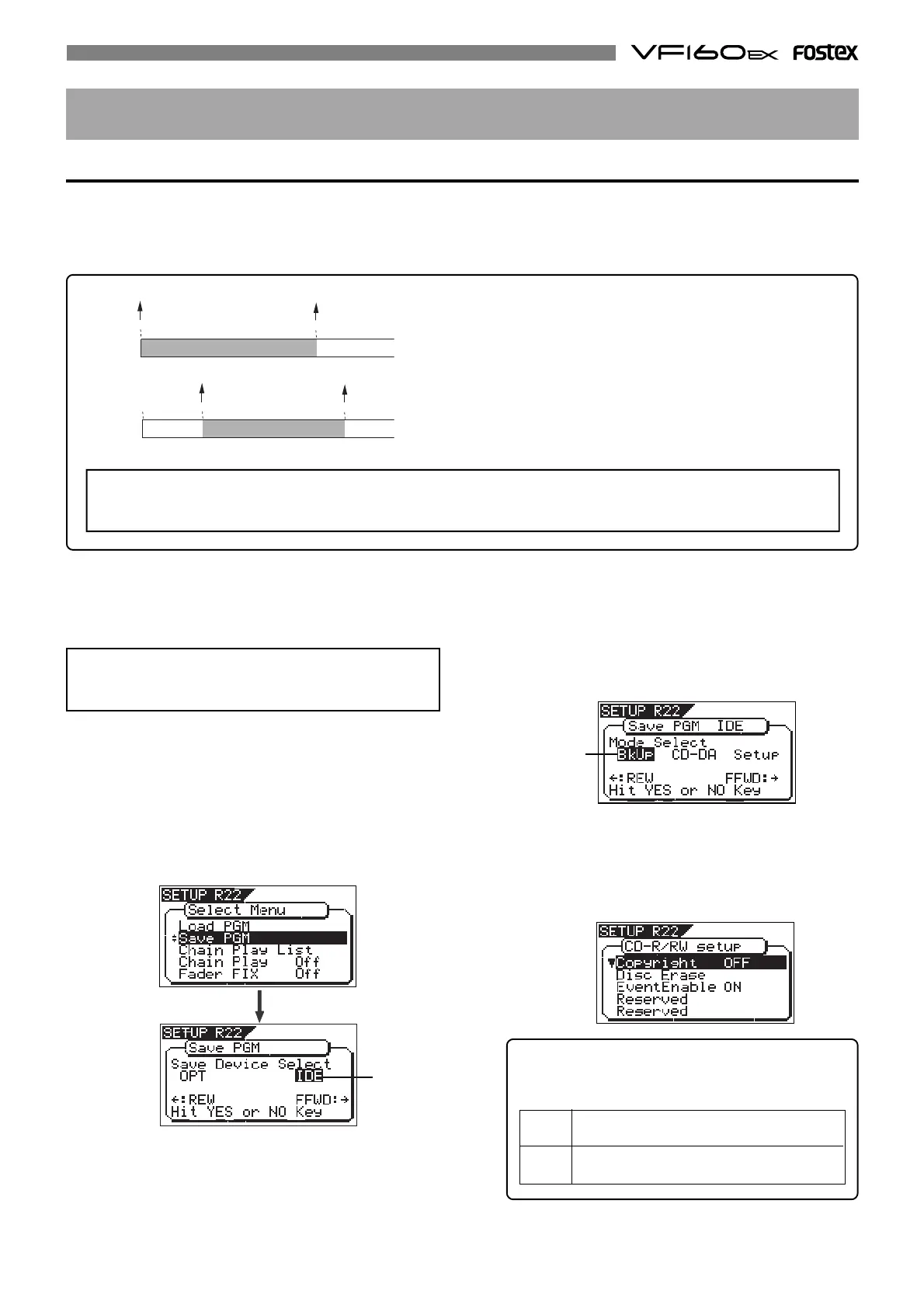 The “Save PGM” menu in the Setup mode, which is used for saving song data, is also used for making an audio CD.