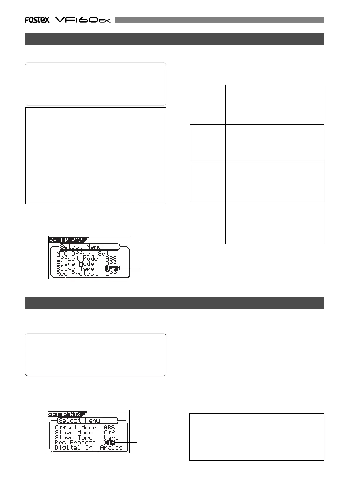 • When you set the Slave Type, the Vari Pitch function is