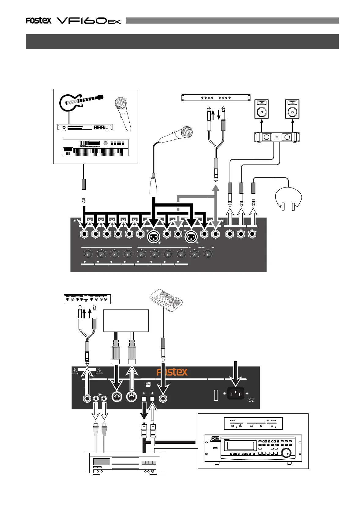 The VF160EX is equipped with input/output jacks to connect the following sound sources and external