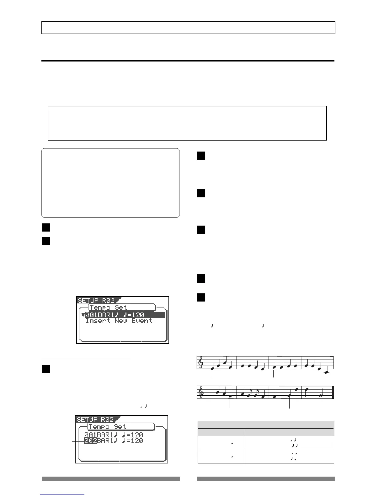 Time signature and tempo settings make a Tempo Map, which is used by the VF80 to manage the song using the
