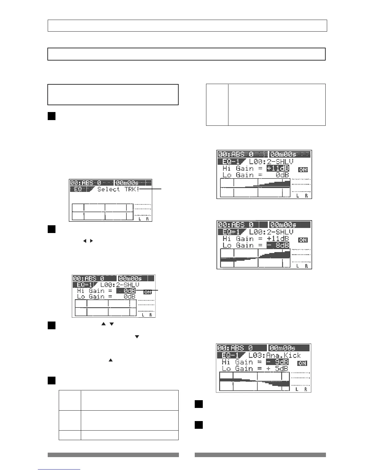 The VF80 is equipped with 2-band (HI and LO) EQ for Tracks 1 through 6.