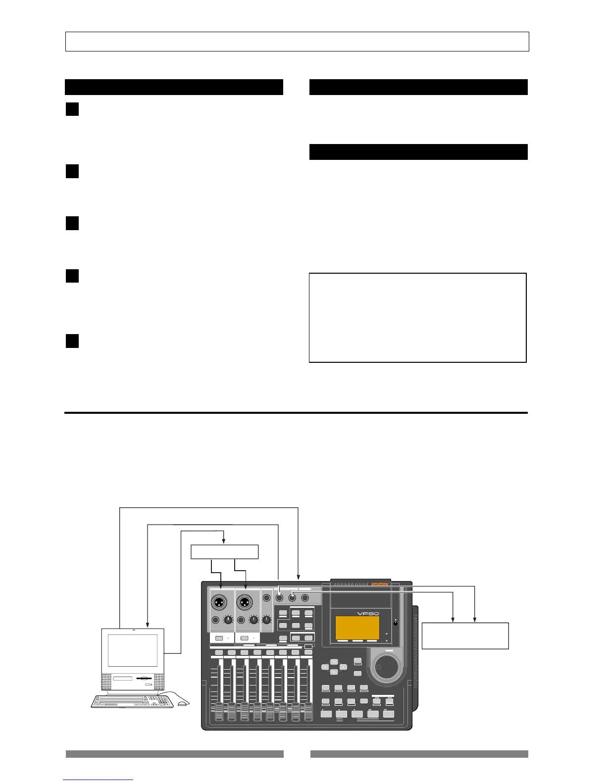 system using MMC (MIDI machine control). In this system, the VF80 will be the master and the computer (with