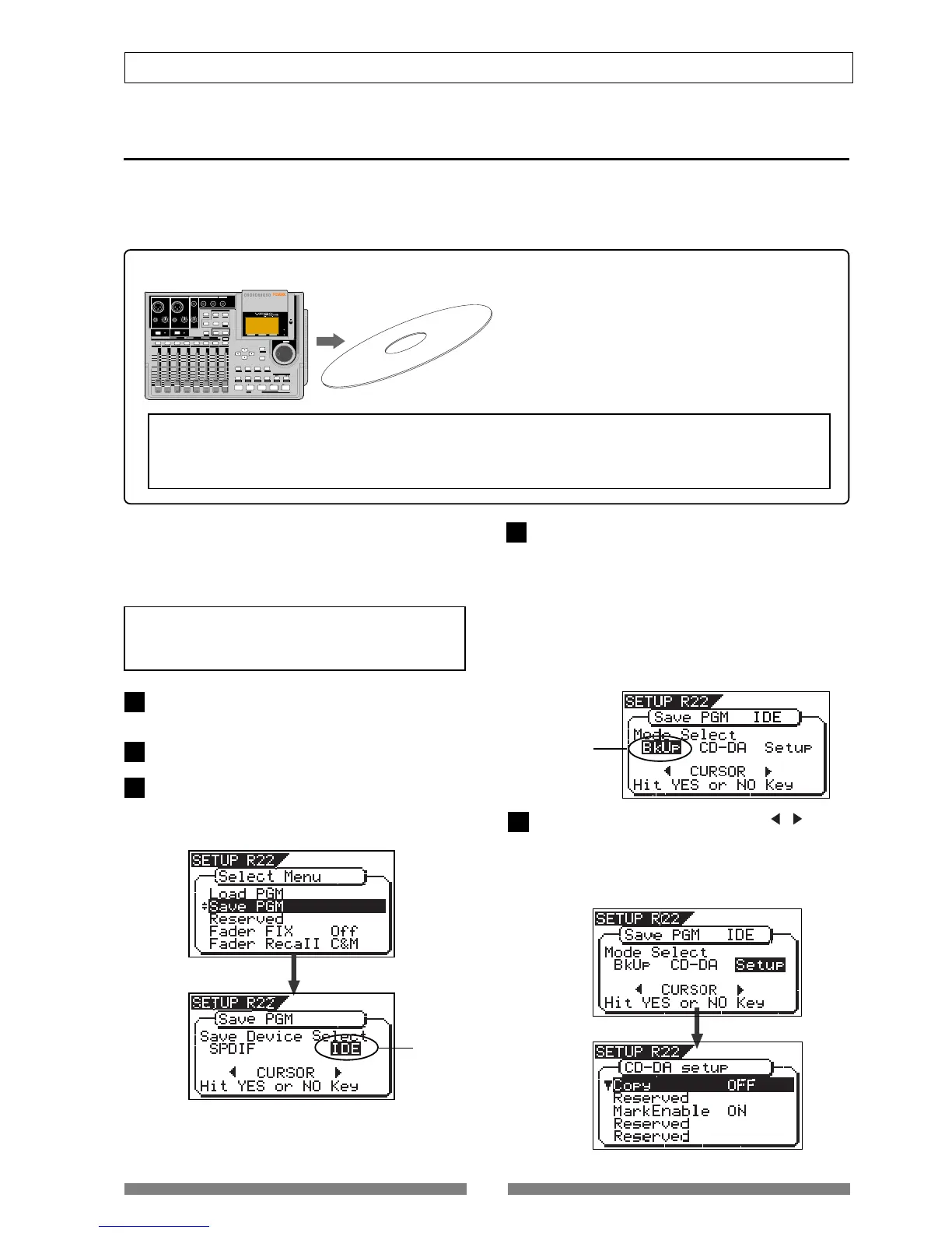 The “Save PGM” menu in the Setup mode, which is used for saving song data, is also used for making an audio