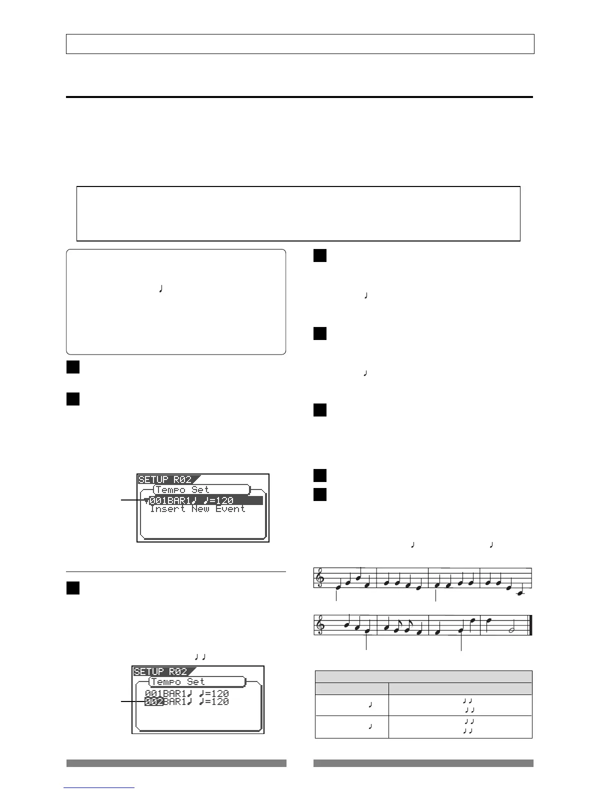 • Available tempo: =30~250, or "DEL" ("DEL" is used for