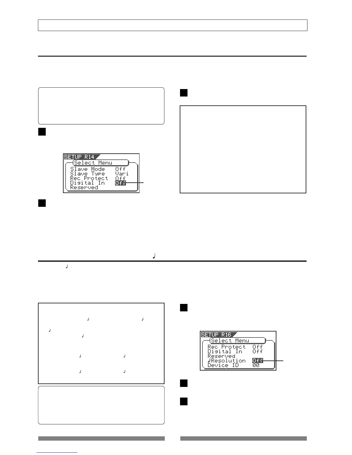 Using the " Resolution" menu item, you can select on/off of the bar/beat resolution mode. By default, the