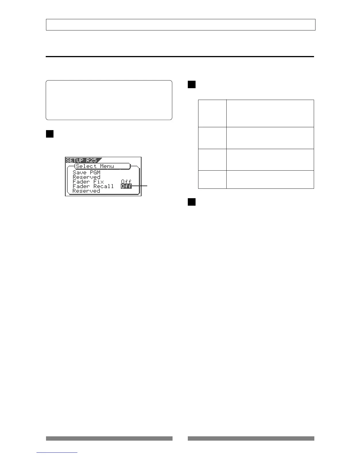 lect "Fader Recall" and press the [ENTER/YES] key.