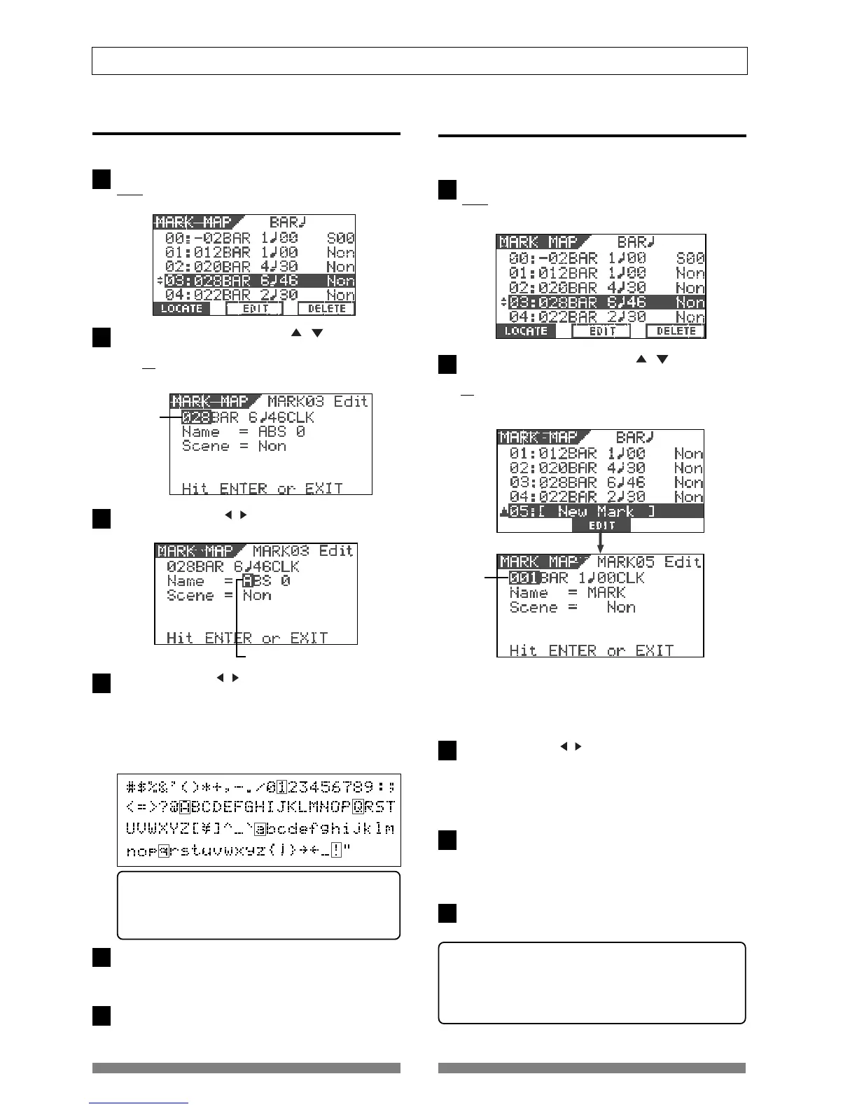 See "Enter a mark title" above and "Scene Memory" in "Mixer