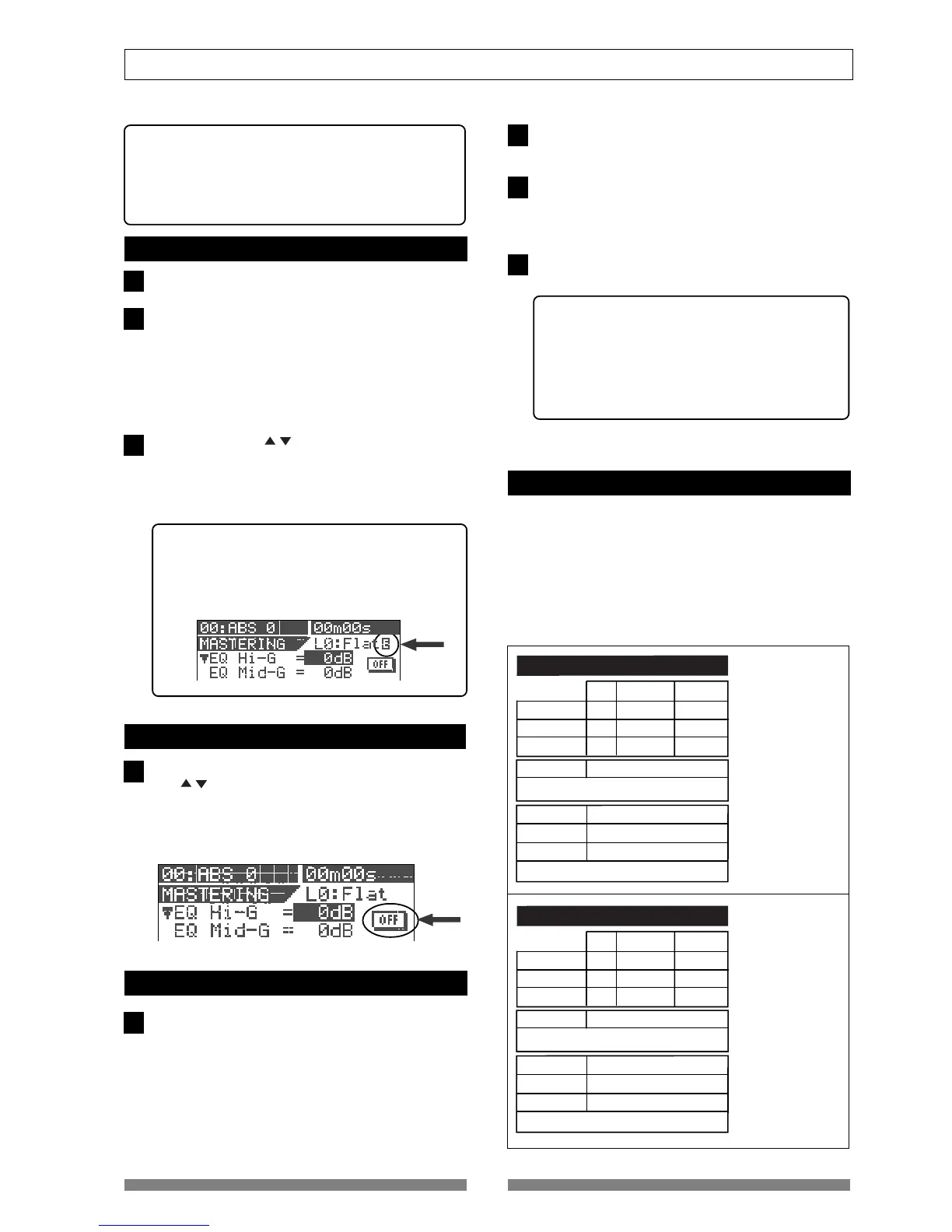 On/off of the mastering effects
