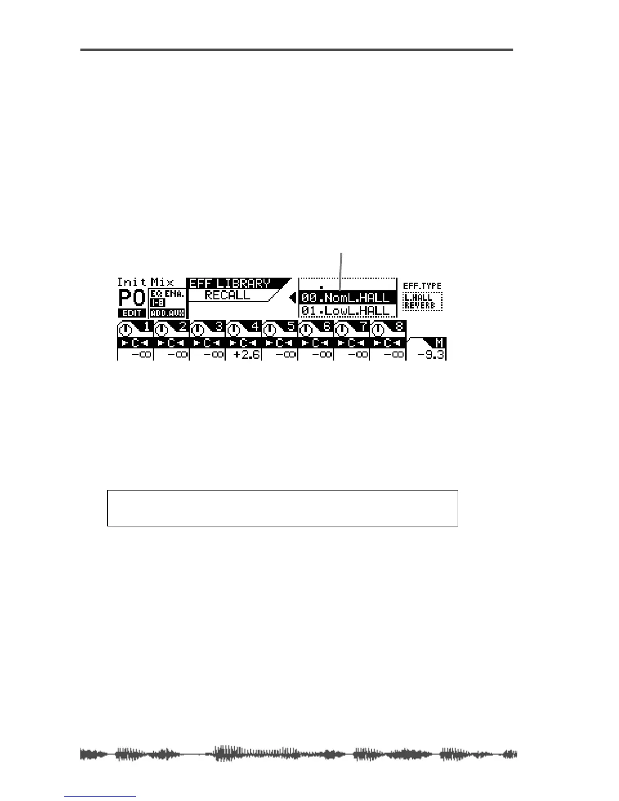 The VM200 displays the EFF LIBRARY RECALL function page, and the