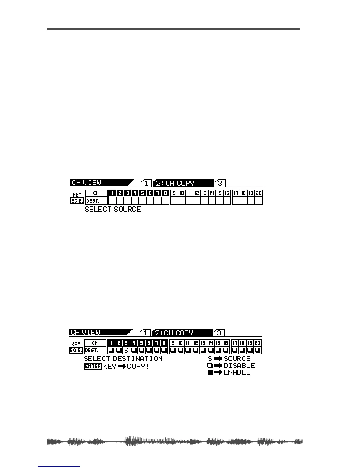 [EQ EDIT] key lights up. The CHANNEL COPY function page