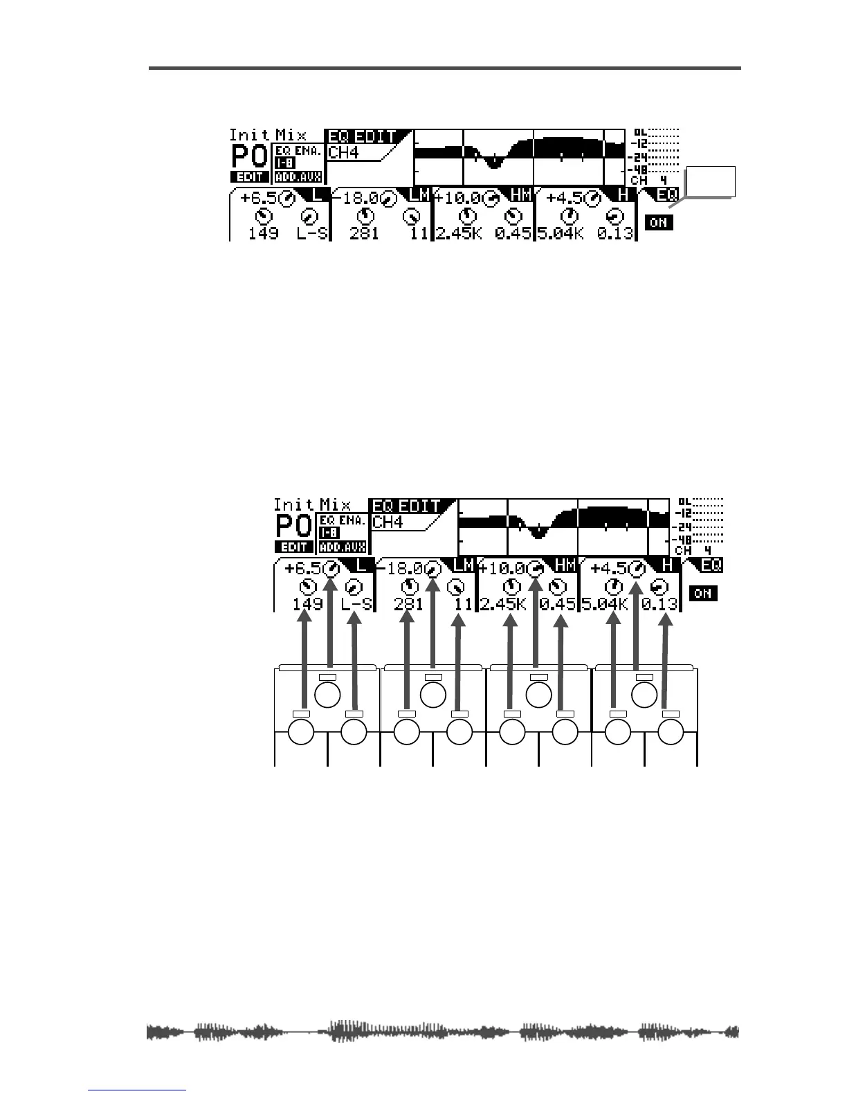 Note that in EQ Edit mode, the Pan rotary controls adjust Freq and Q.