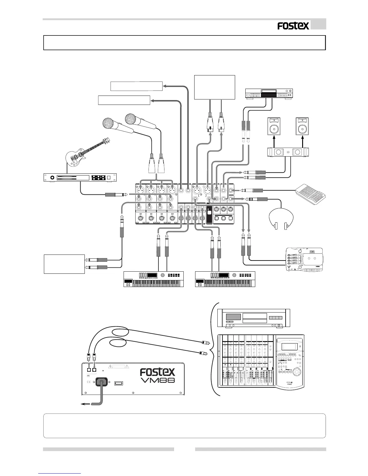 Sound sources and external equipment shown in the examples below can be connected to the VM88’s