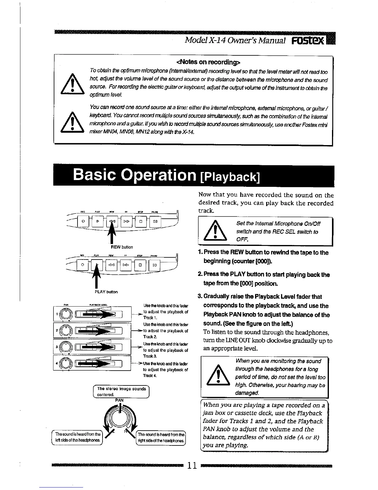 Fostex X-14 - Basic Operation: Playback; Playback Procedure and Level Adjustment