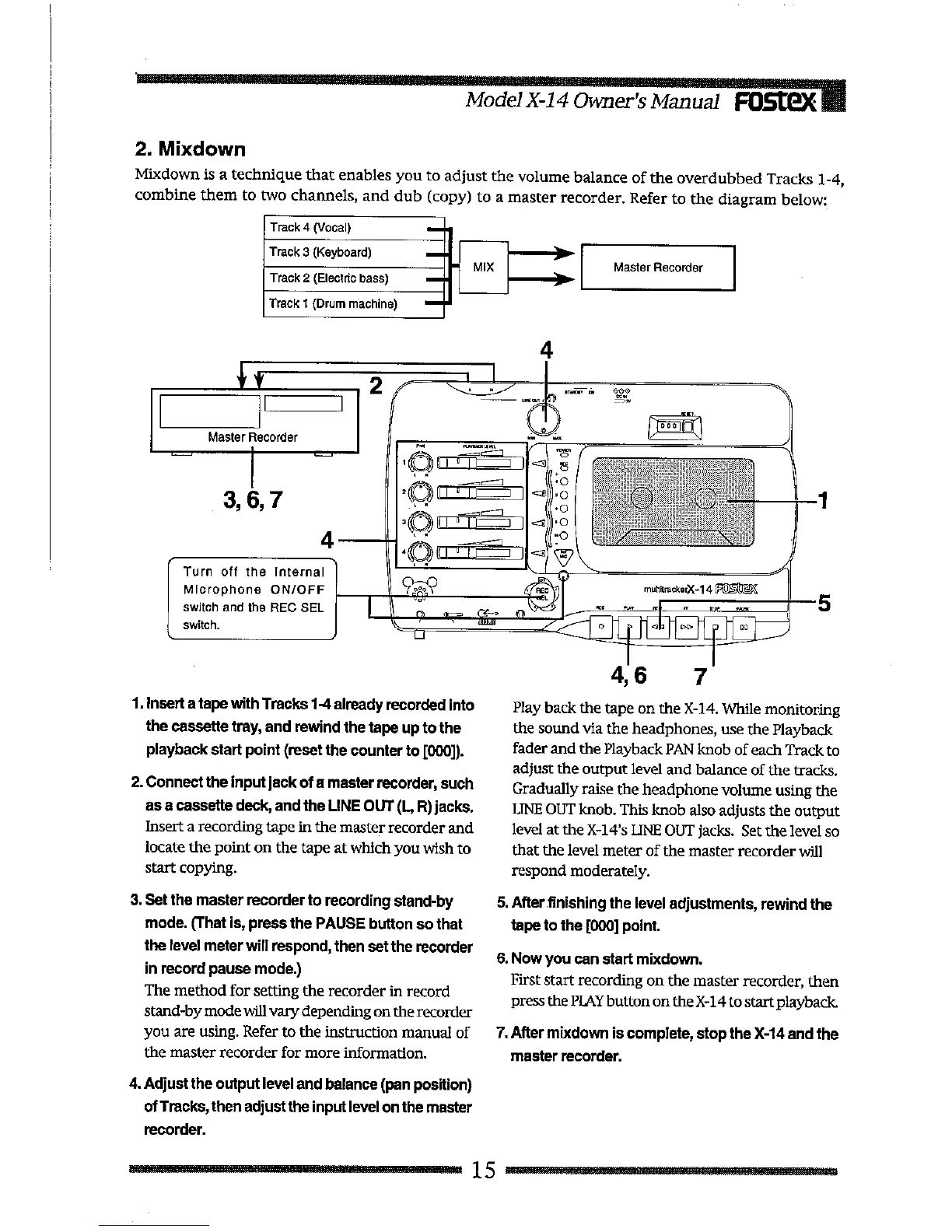 Fostex X-14 - Advanced Operation: Mixdown; Mixdown Procedure to Master Recorder