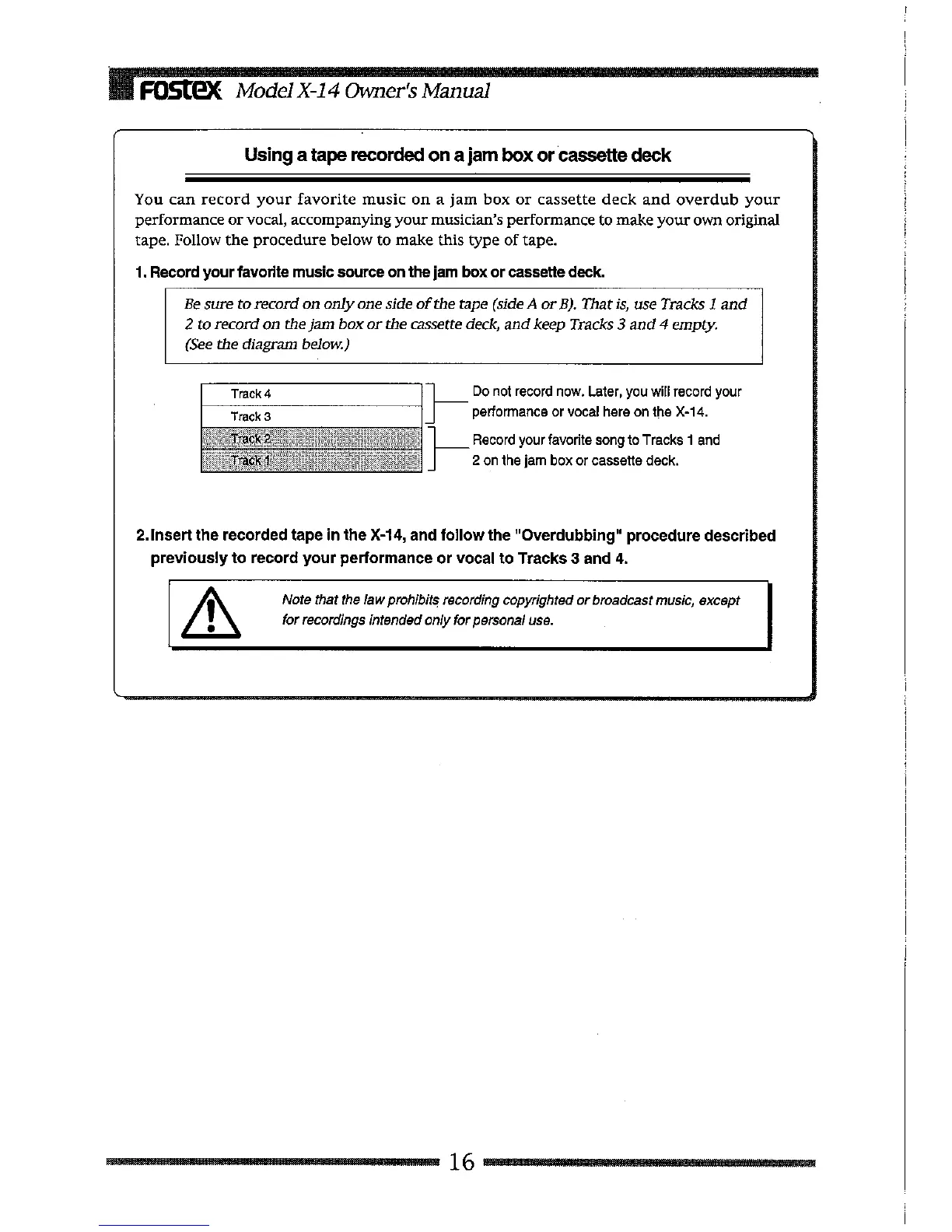 Fostex X-14 - Using Pre-Recorded Tapes; Recording and Overdubbing on Jam Box Tapes