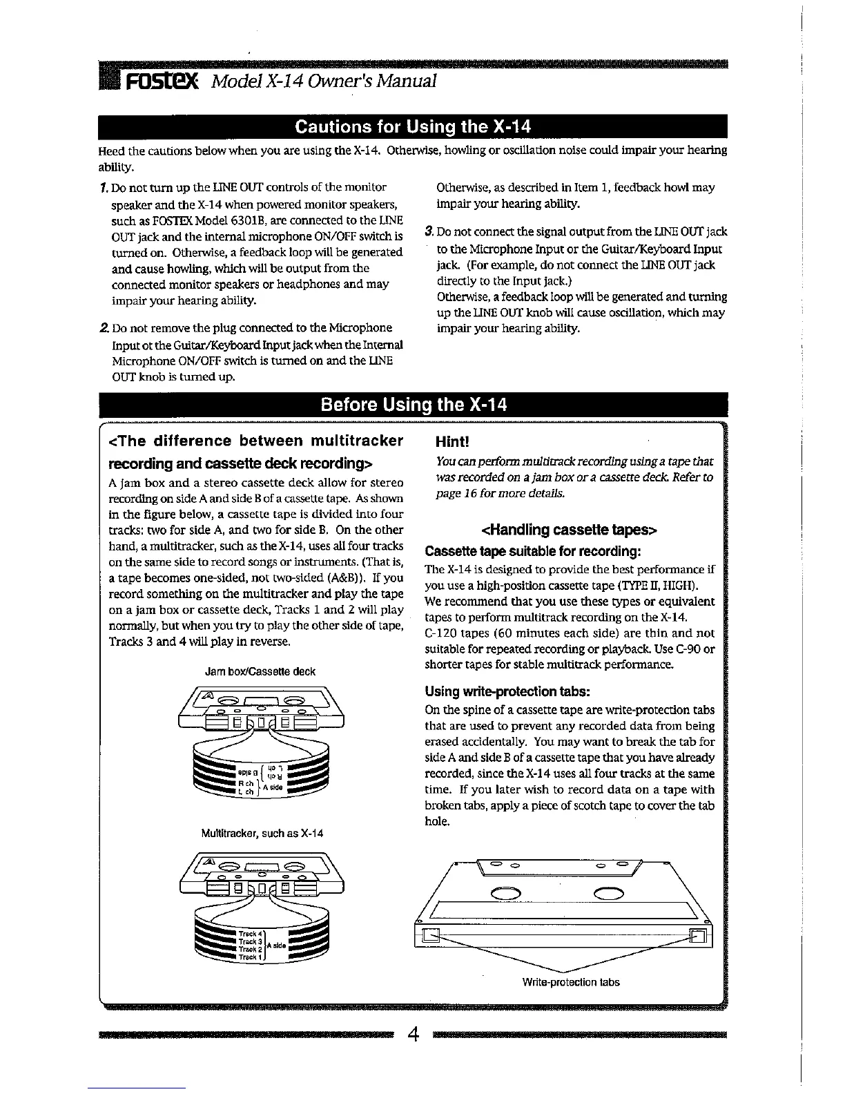 Fostex X-14 - Usage Cautions and Tape Preparation; Operating Cautions; Before Using the X-14; Cassette Tape Handling