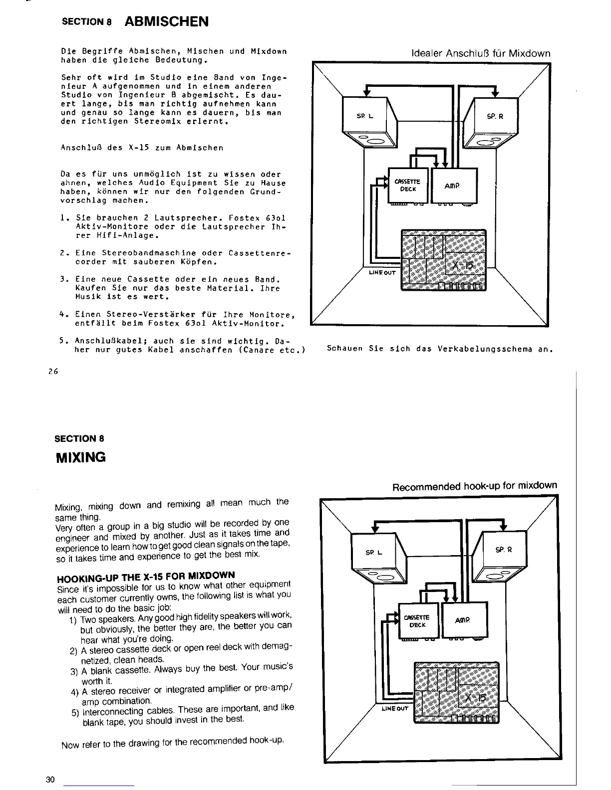 Fostex X-15 Multitracker - Mixing and Mixdown Procedures; Setting Up for Mixdown
