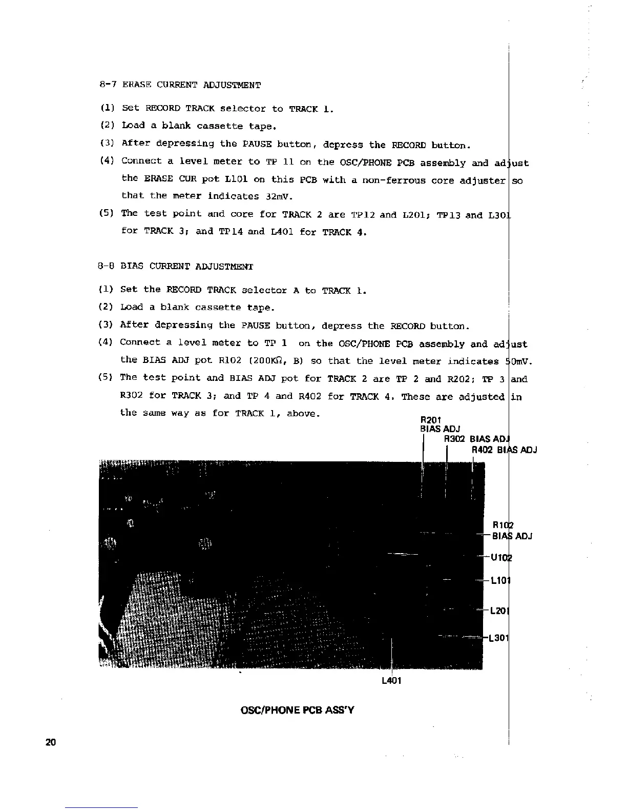 Fostex X-15 - Erase Current Adjustment; Bias Current Adjustment